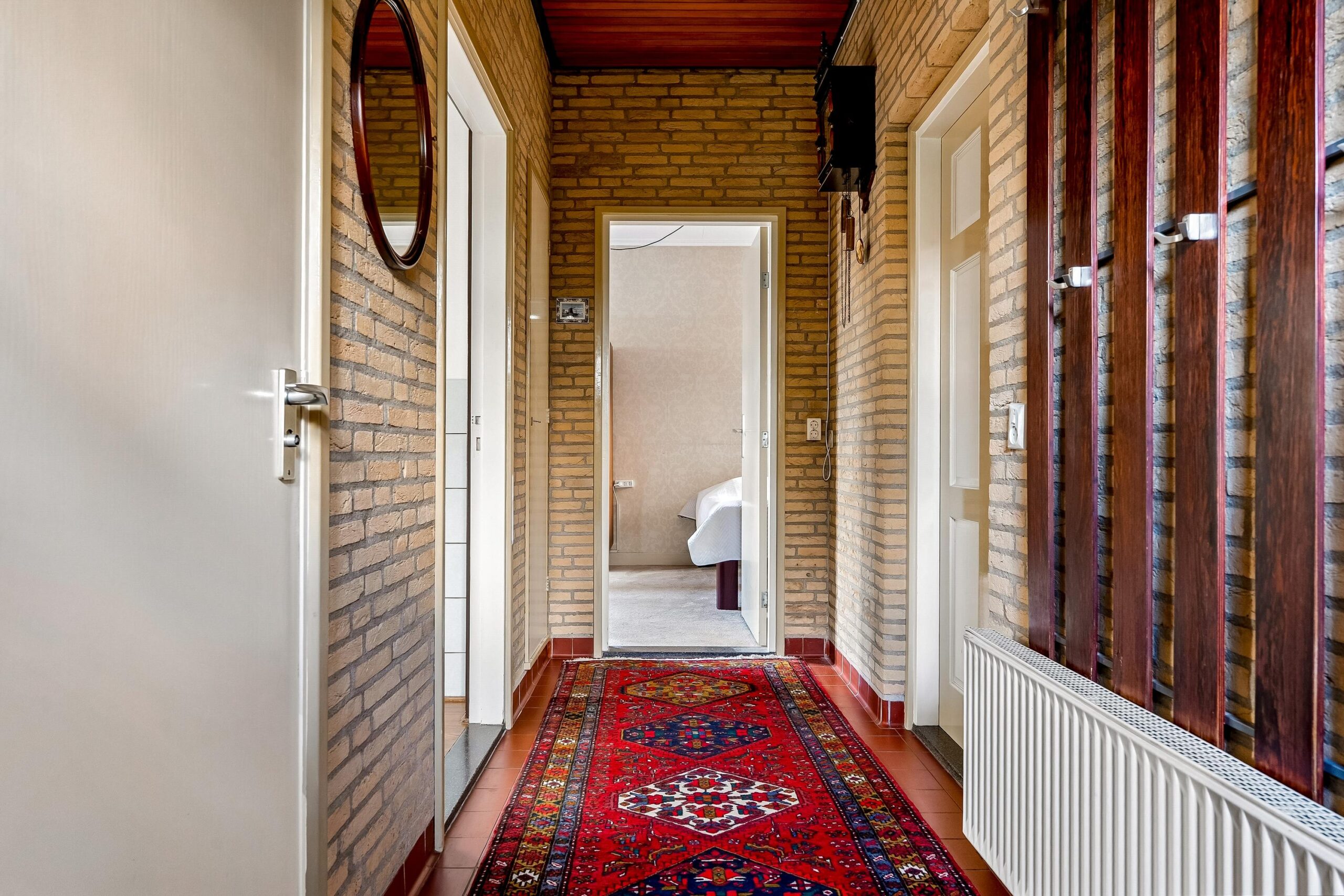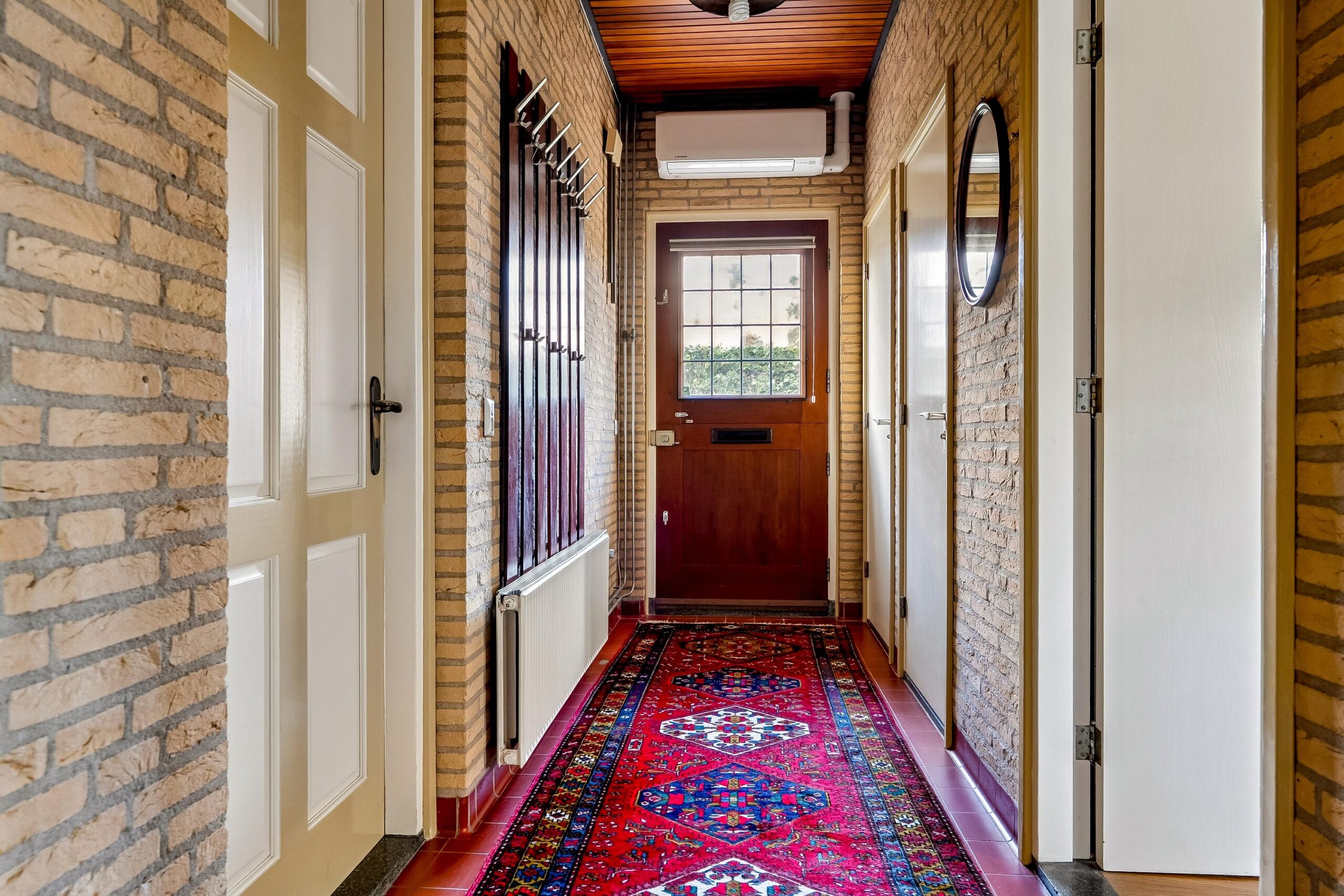 Via de voordeur betreedt je de woning in de entree, een centrale hal die toegang geeft tot vrijwel alle vertrekken op de begane grond. Hier bevinden zich de meterkast, het toilet en de doorgang naar de woonkamer, keuken en badkamer. De centrale gang is bovendien voorzien van airconditioning.