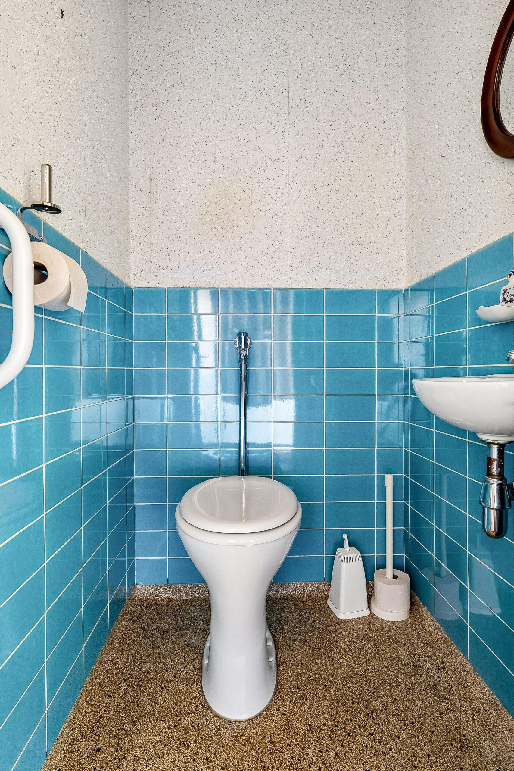 Het toilet op de begane grond is afgewerkt met een stijlvolle granieten vloer.