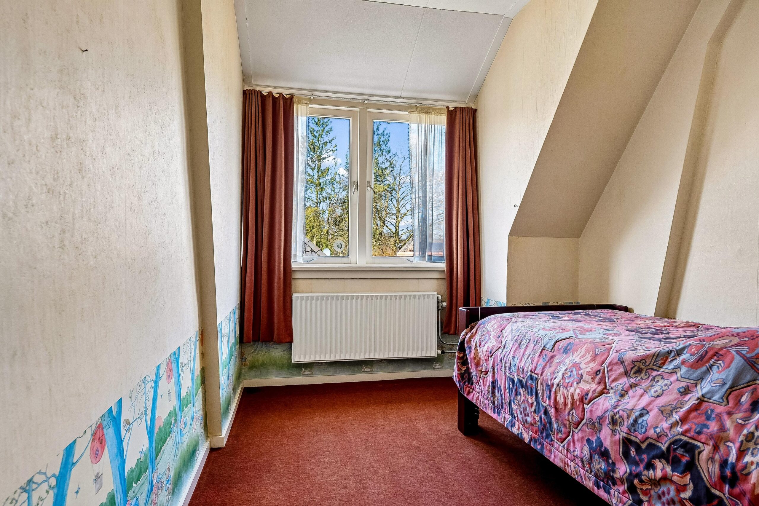 De verdieping beschikt over drie slaapkamers, variërend in grootte en indeling. De schuine kapconstructie geeft de ruimtes een karakteristieke en sfeervolle uitstraling.