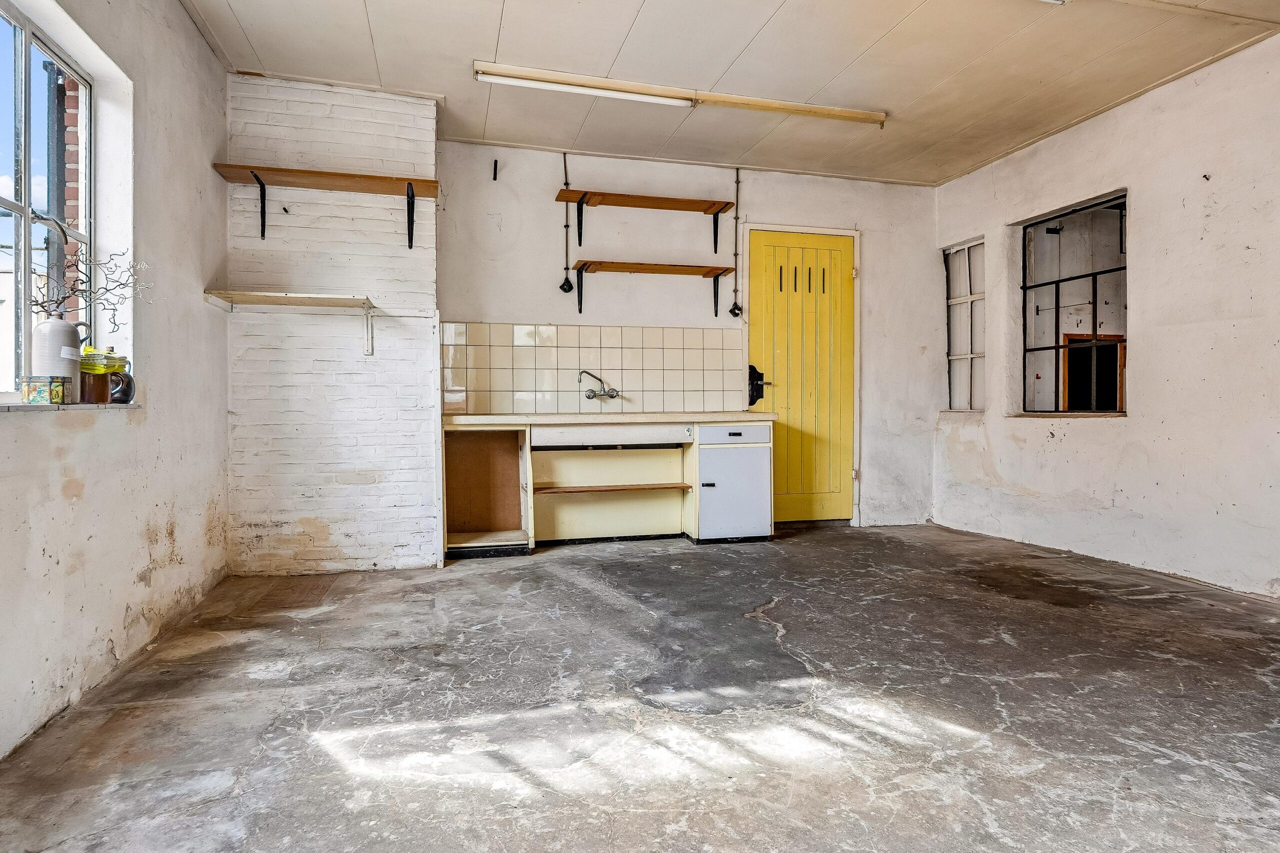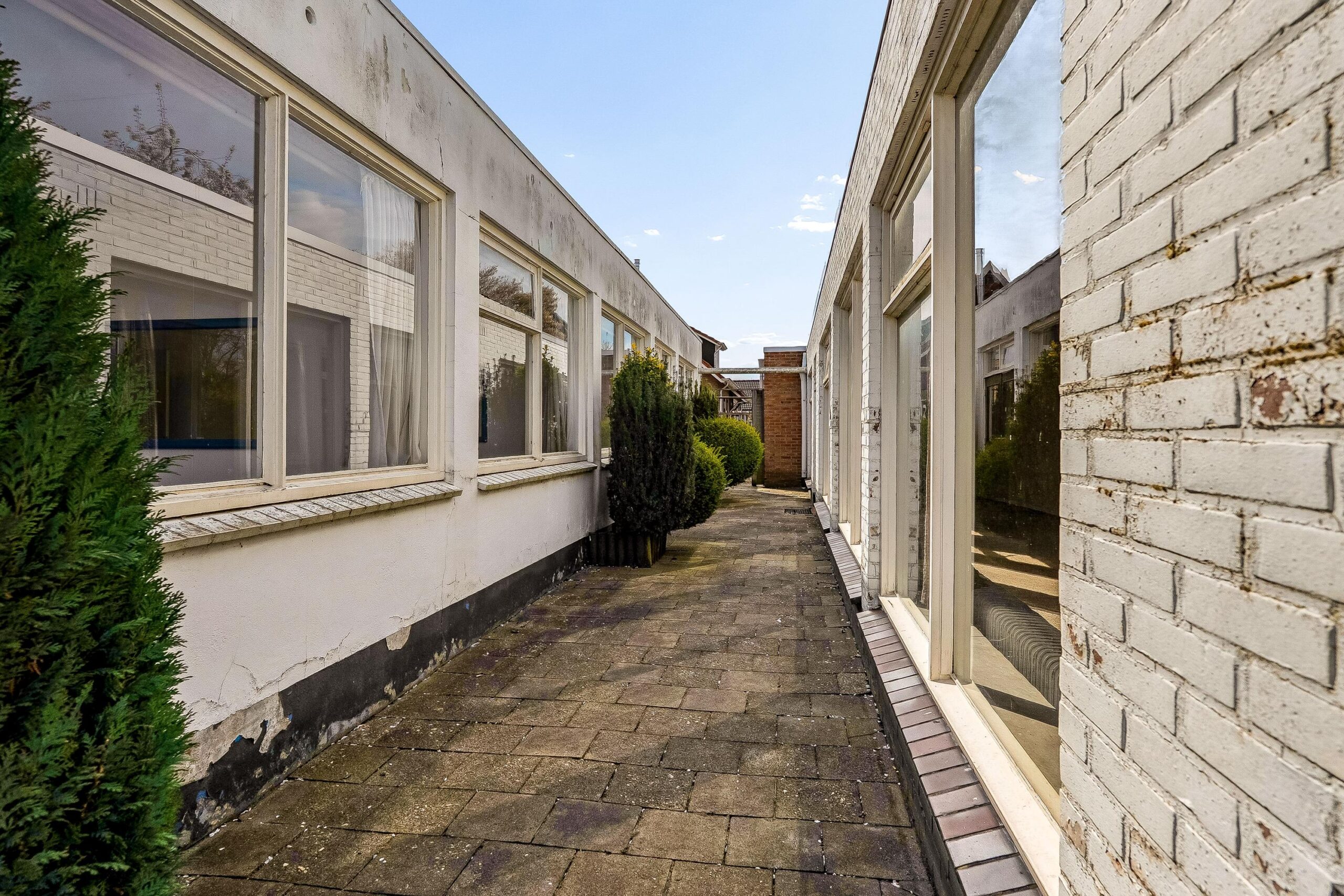 Het tweede bijgebouw heeft een langgerekte vorm en biedt eveneens veel bruikbare ruimte met een flexibele indeling.