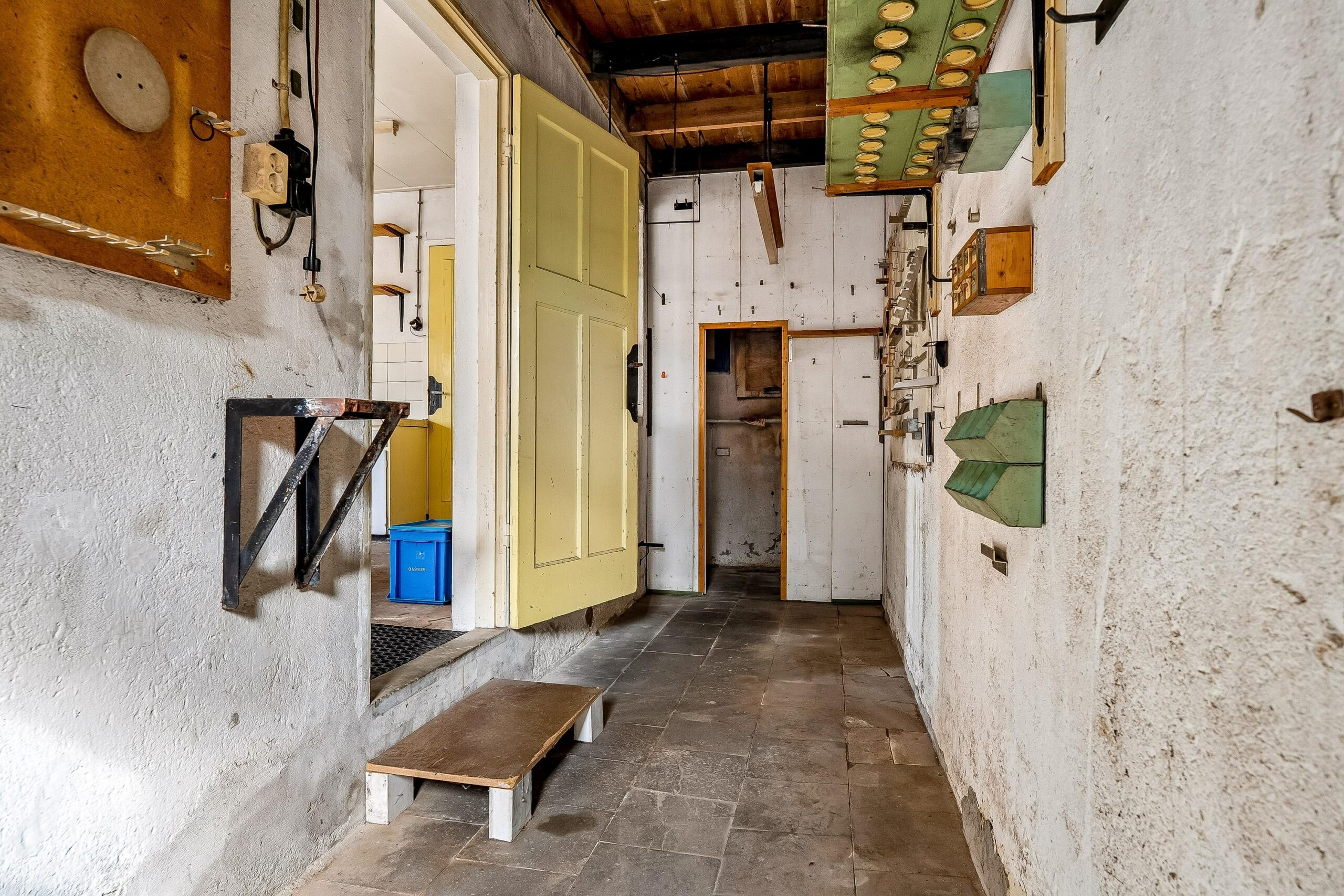 Het eerste bijgebouw bestaat uit meerdere grote open ruimtes, verdeeld over verschillende gedeelten en niveaus, en is uitermate geschikt als werkplaats, opslagruimte of bedrijfsruimte.