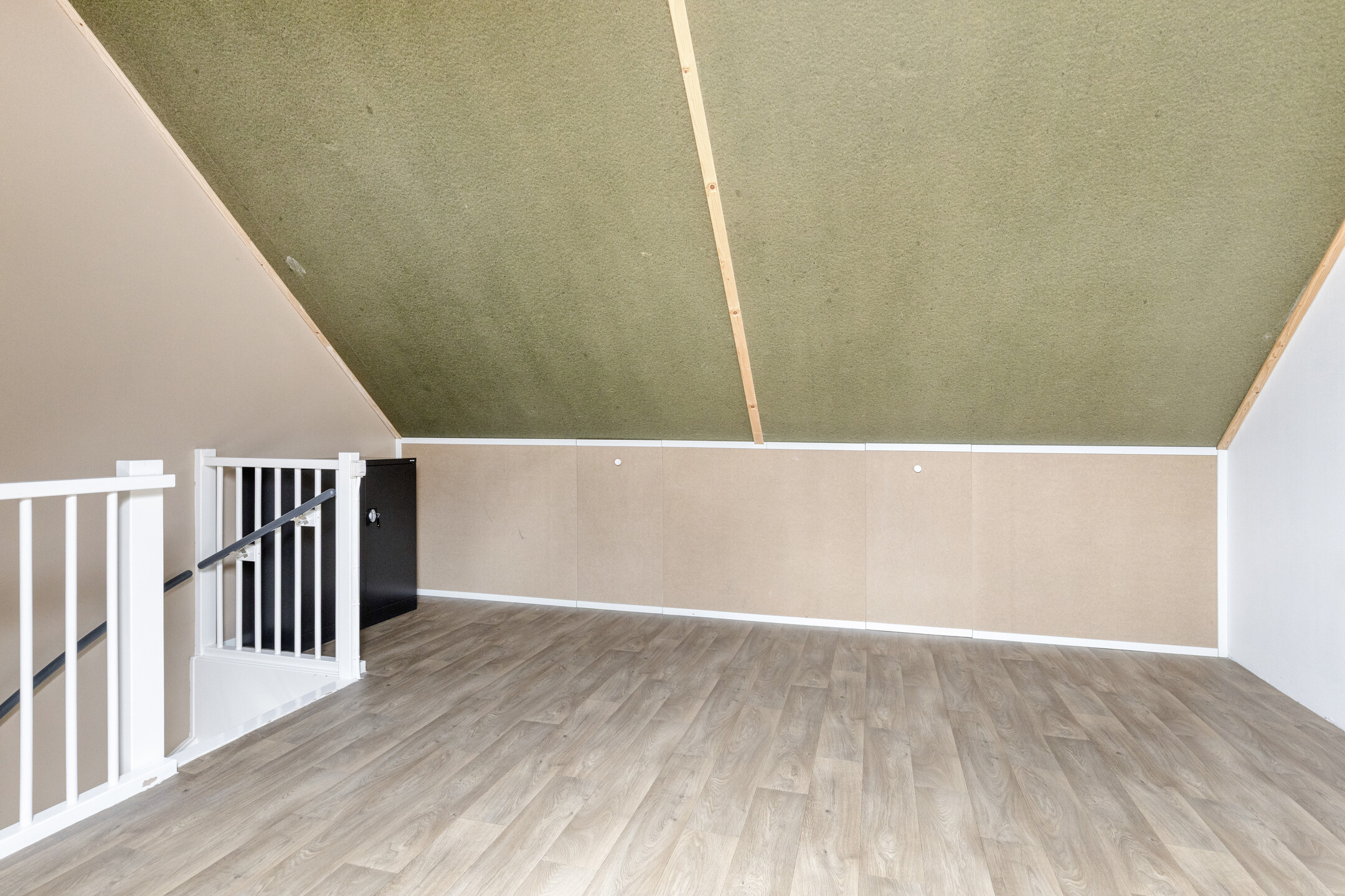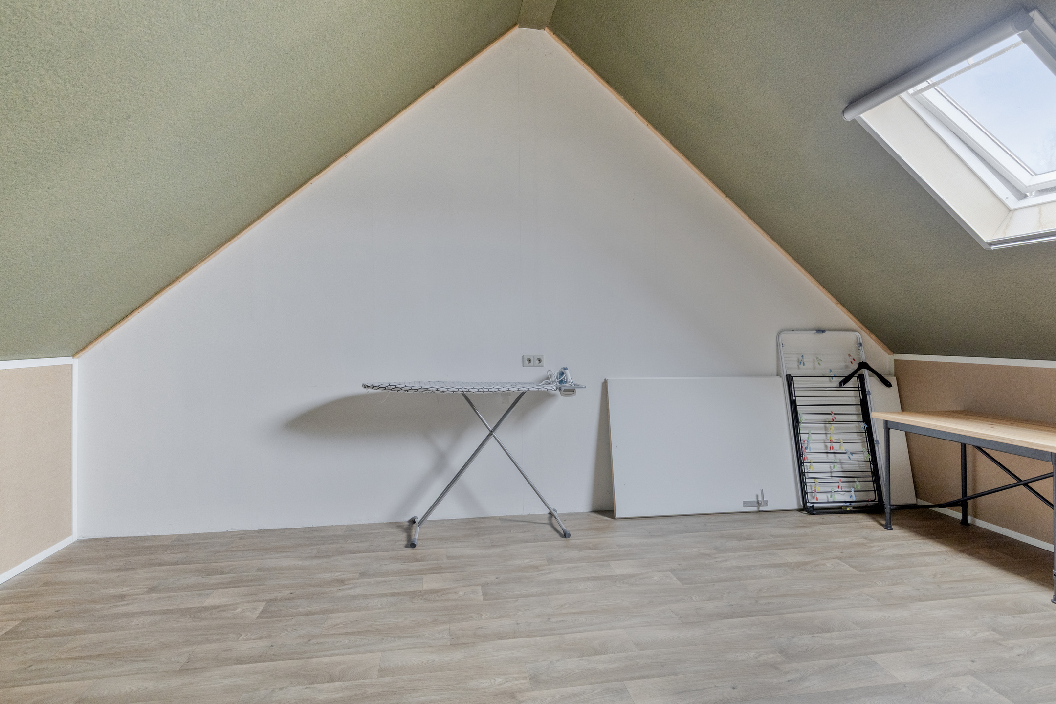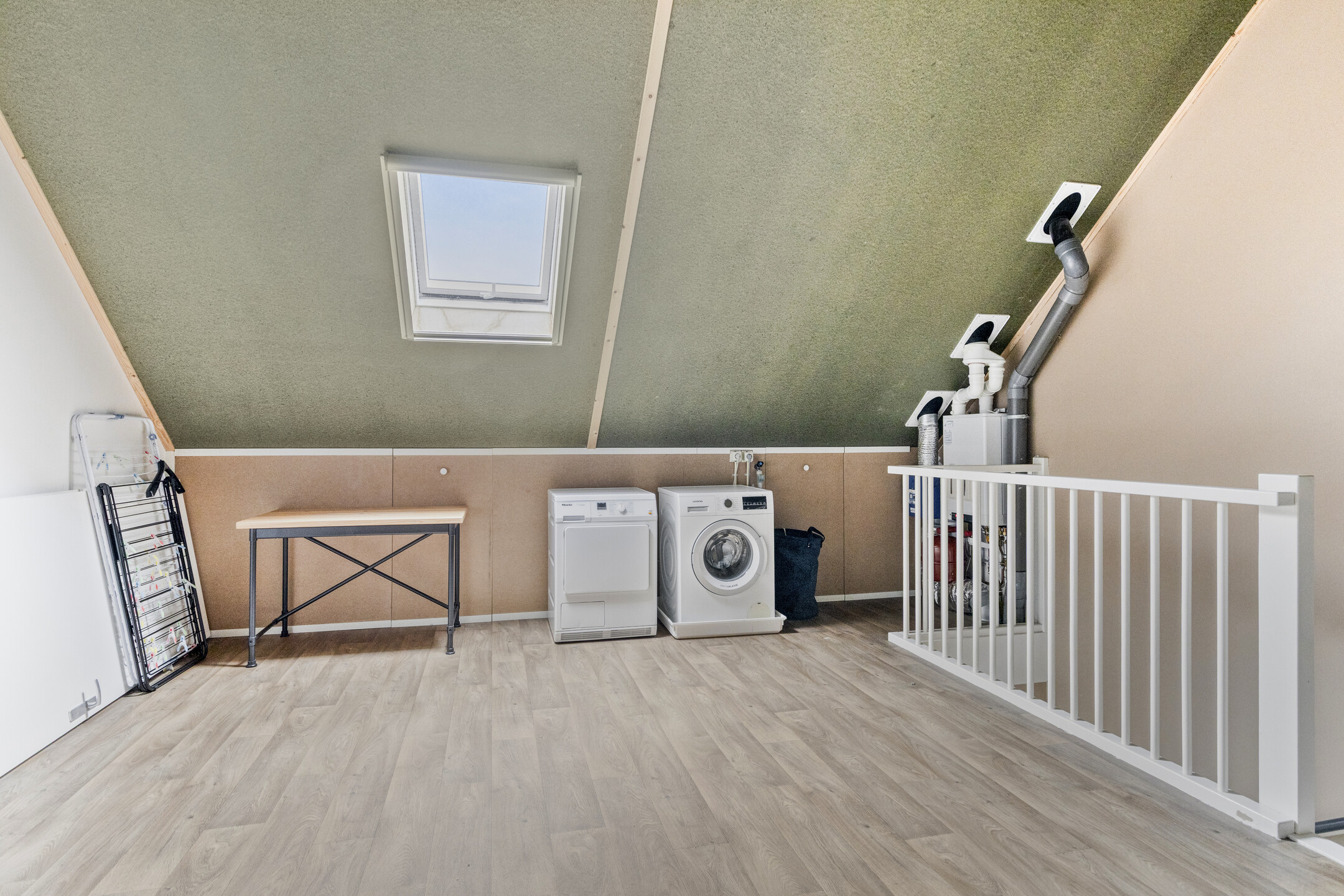 Via een vaste trap is de tweede verdieping bereikbaar. Dit is momenteel een grote open ruimte met daglichttoetreding en bergruimte achter de knieschotten. Hier bevinden zich ook de aansluitingen voor de wasmachine en droger en de cv-ketel uit 2015. Door de ruimte en hoogte kan deze verdieping eenvoudig worden ingericht als volwaardige derde slaapkamer.