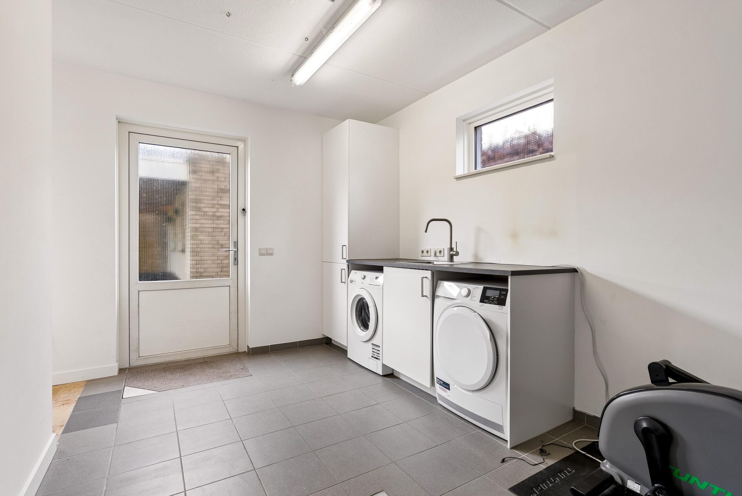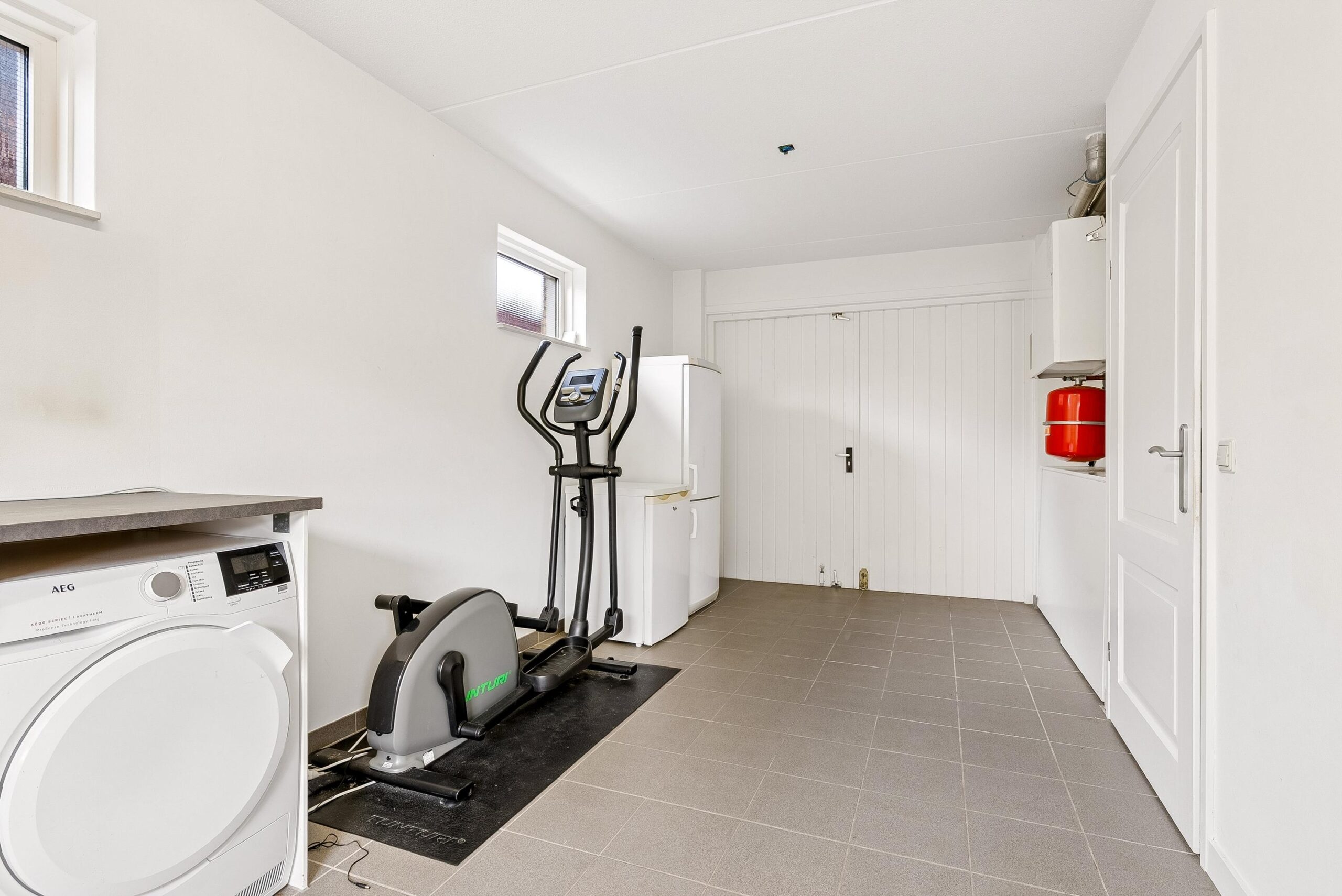 Via de keuken bereik je de aangebouwde garage/bijkeuken. Hier vind je de witgoedsopstelling, een extra spoelbak, de cv-ketel en dubbele deuren naar de oprit. Daarnaast is er een tuindeur naar de achtertuin. Een veelzijdige ruimte die je desgewenst weer als garage kunt gebruiken.
