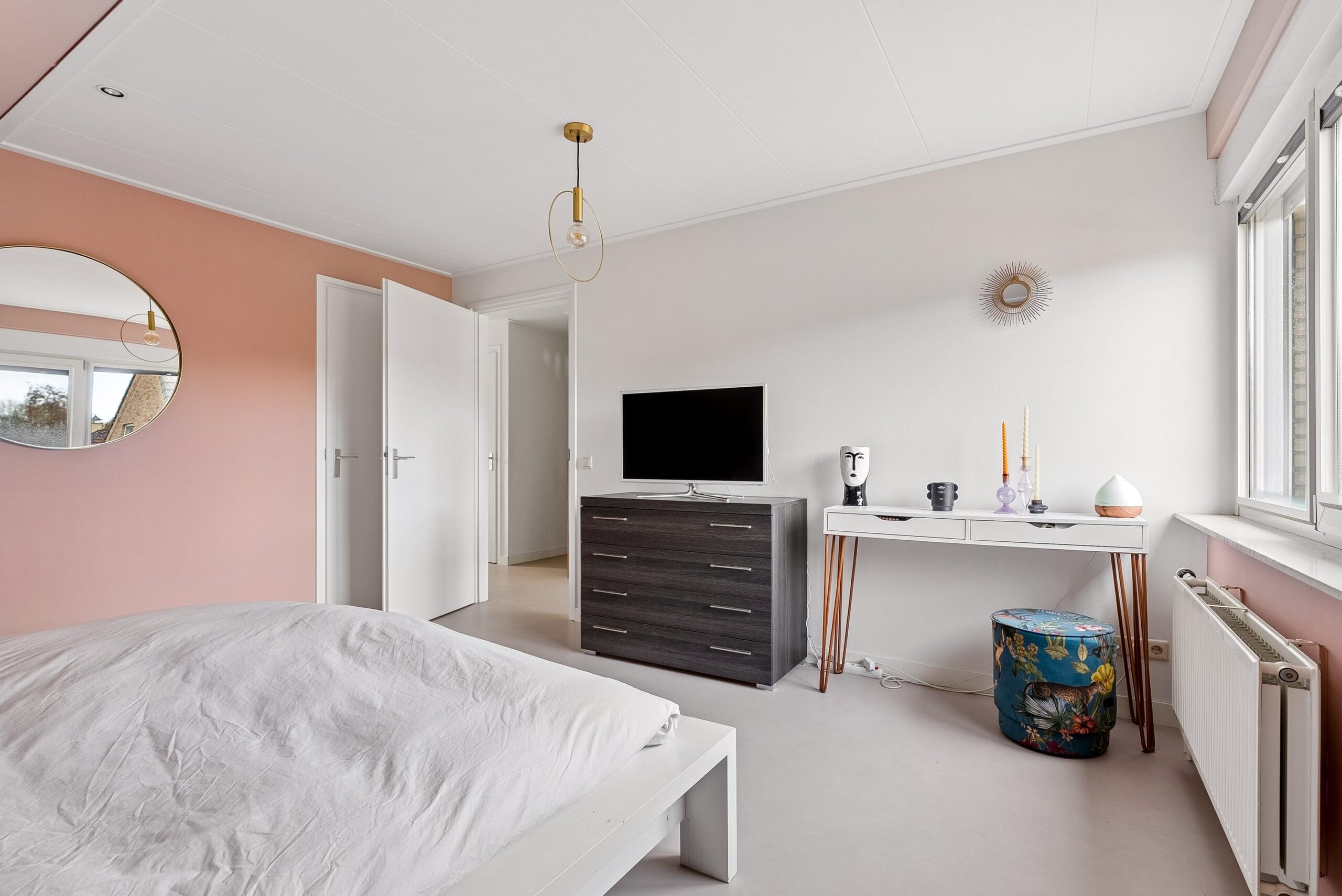 Drie slaapkamers zijn ruim en volwaardig van formaat, waardoor je hier moeiteloos meerdere grote bedden en kasten kunt plaatsen. De kamers hebben een prettige lichtinval en voelen ruim aan door de rechte wanden en praktische indeling. De vierde kamer is iets compacter en momenteel ingericht als kantoorruimte, maar ook zeer geschikt als kinderkamer, hobbyruimte of logeerkamer.