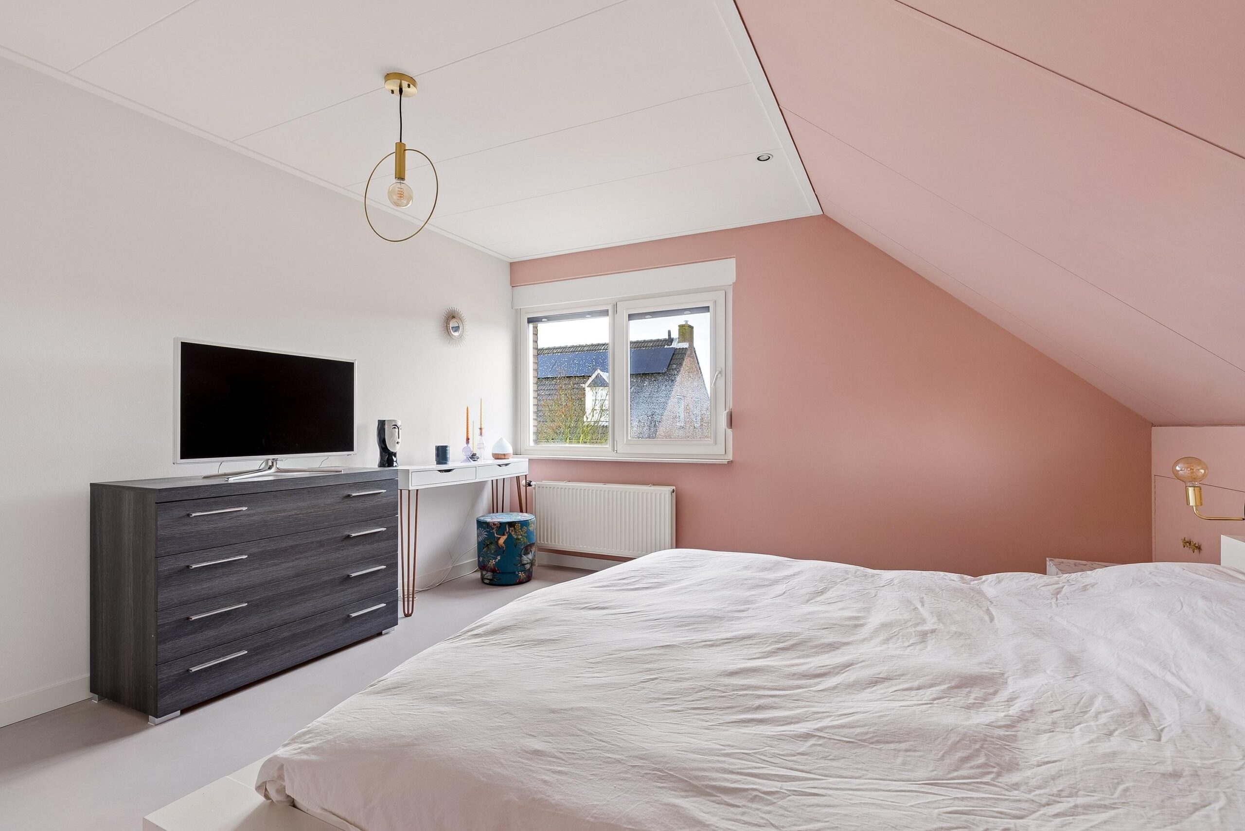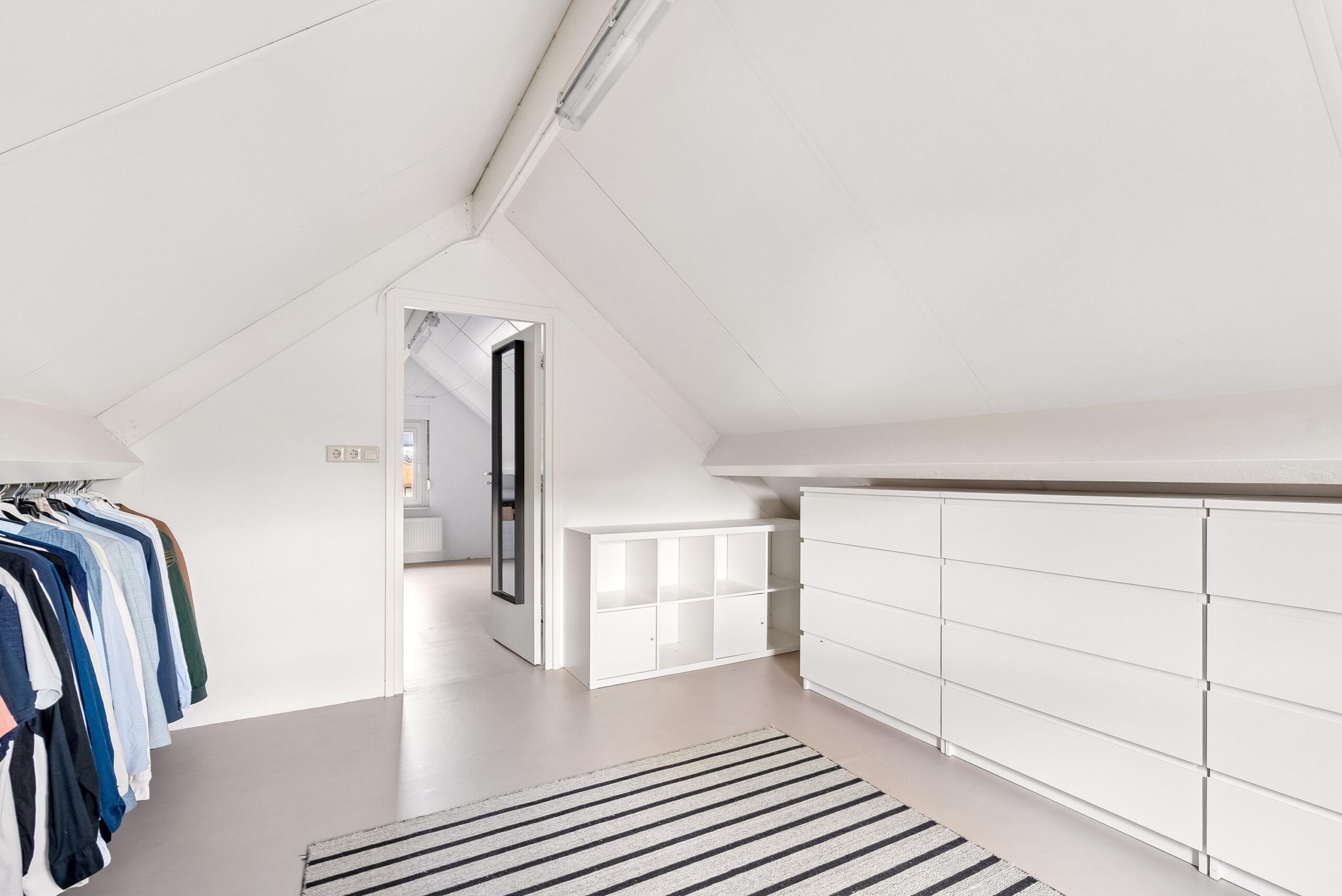 Op de overloop heb je voldoende plek voor bijvoorbeeld extra bergruimte of een werkplek. Aansluitend bevindt zich de vijfde slaapkamer, momenteel ingericht als inloopkast. Deze kamer heeft een prettige hoogte en biedt volop mogelijkheden: denk aan een tienerkamer, logeerkamer of rustige thuiswerkplek.