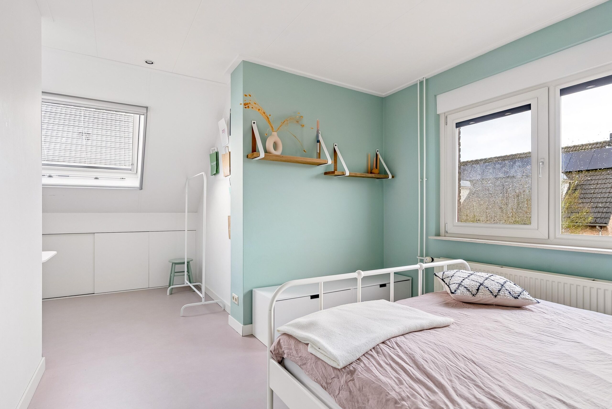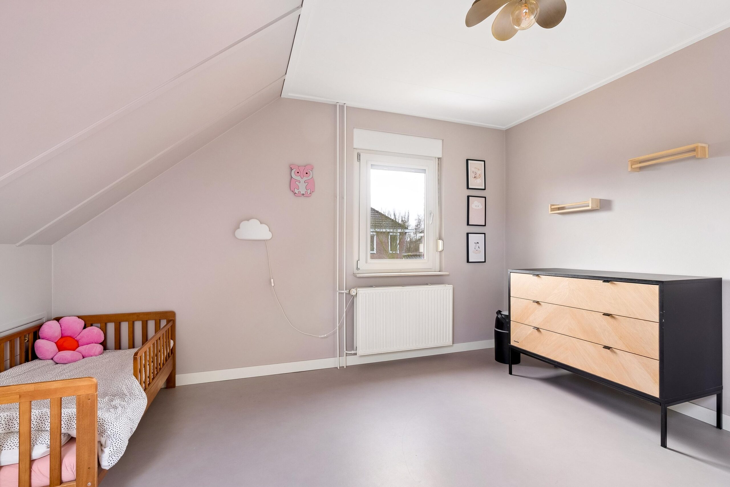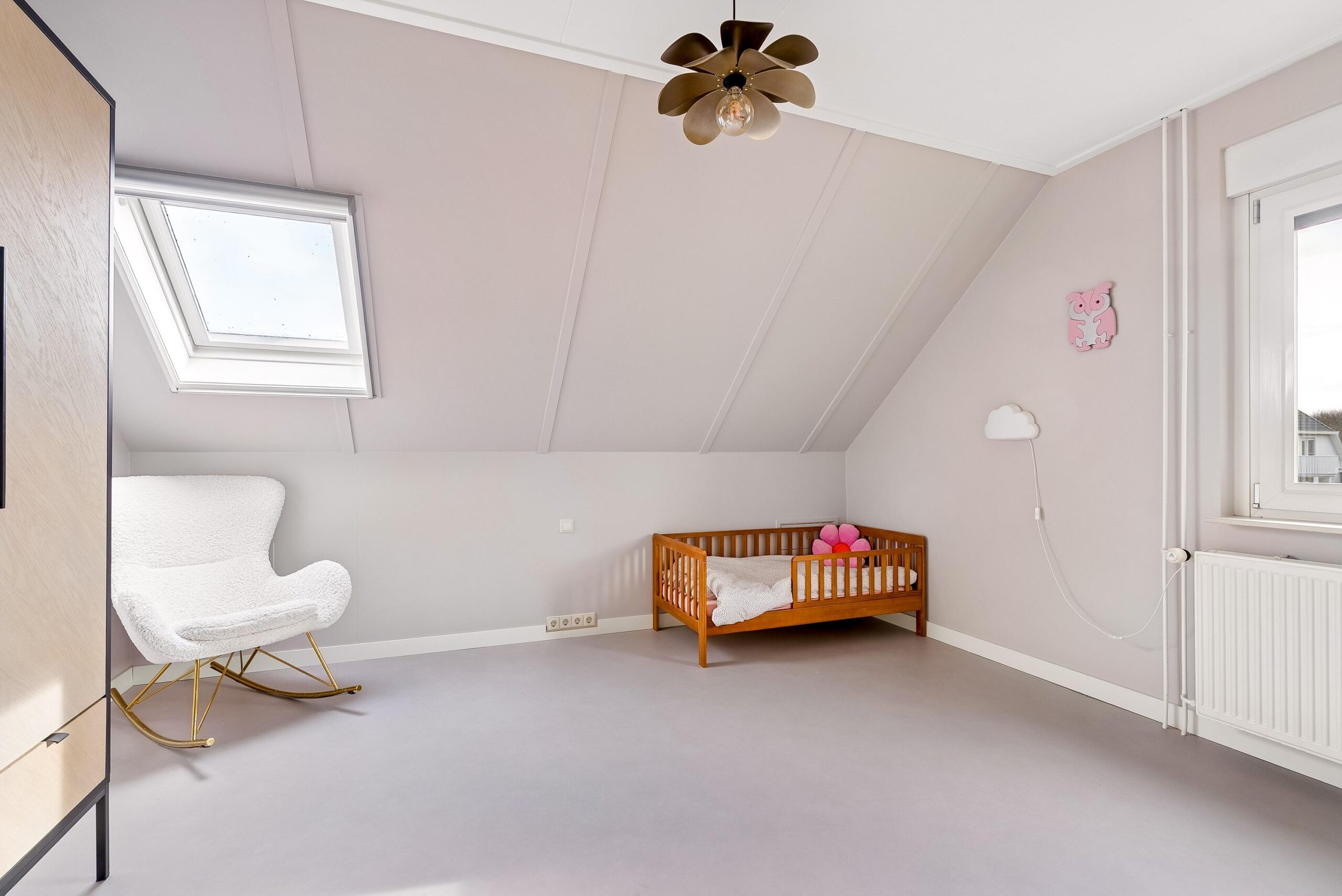 Ook deze verdieping is voorzien van dezelfde strakke vloerafwerking als de eerste verdieping, waardoor het geheel mooi op elkaar aansluit. De indeling van deze woonlaag maakt de woning bijzonder geschikt voor grotere gezinnen of voor wie graag extra ruimte tot zijn beschikking heeft.