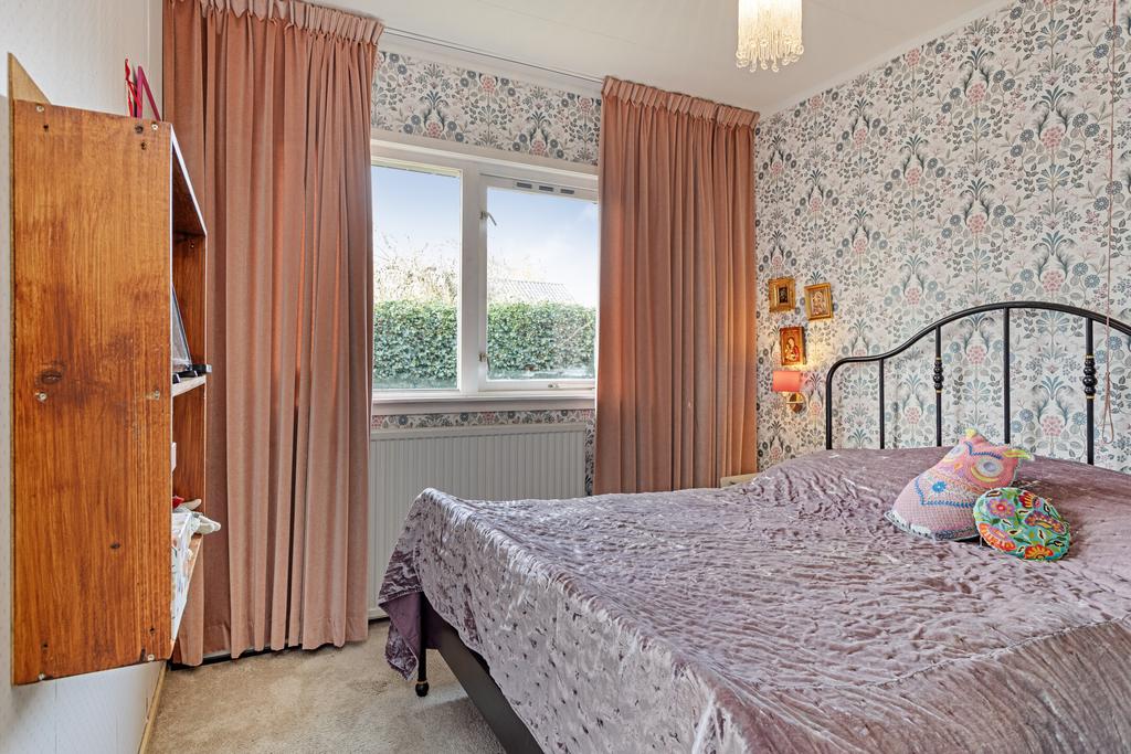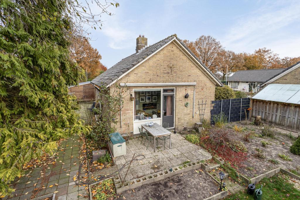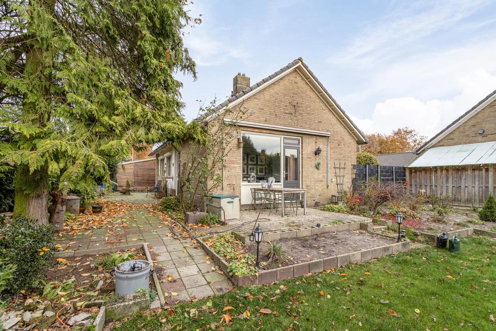 Ben je op zoek naar een vrijstaande bungalow met twee slaapkamers, een badkamer op de begane grond en een aangebouwde stenen garage, gelegen op een ruim perceel met tuin rondom?