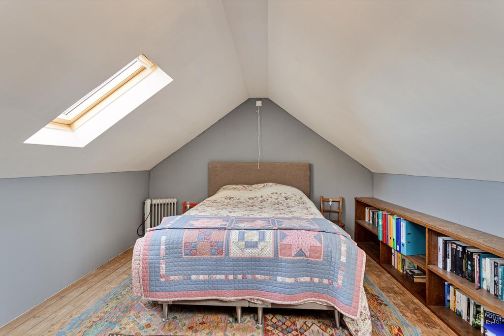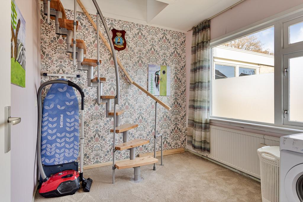 Via een vaste trap is de eerste verdieping bereikbaar, waar zich een ruime kamer bevindt. Deze multifunctionele ruimte kan gebruikt worden als hobby- of werkkamer, logeerkamer of als extra slaapkamer. Vanuit de hal is er middels een vlizotrap een bergzolder te bereiken.