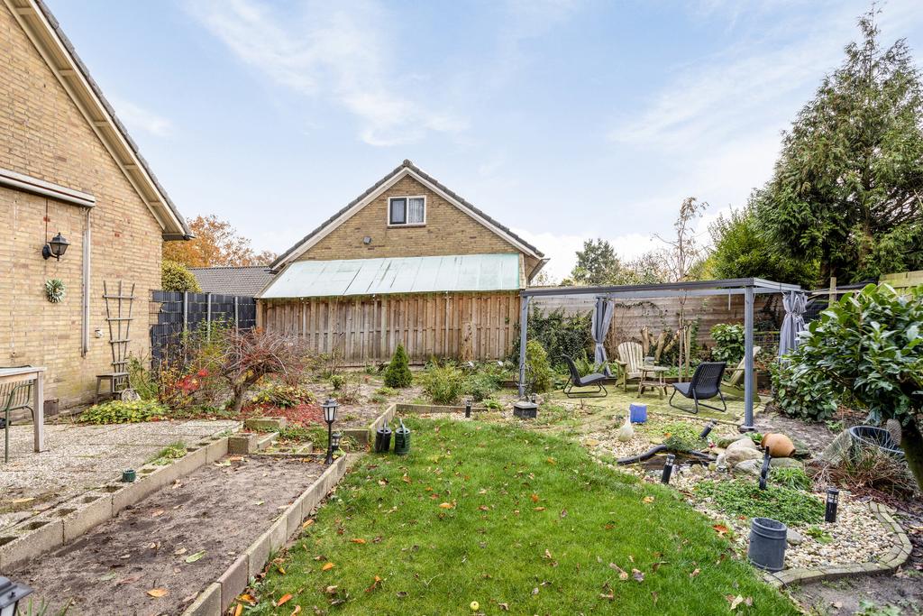Er ligt een riante tuin rondom de woning. Degenen met groene vingers kunnen hier lekker tuinieren, maar je kunt er ook heerlijk ontspannen op één van de vele terrassen in de tuin. Eventuele uitbouw is mogelijk.
