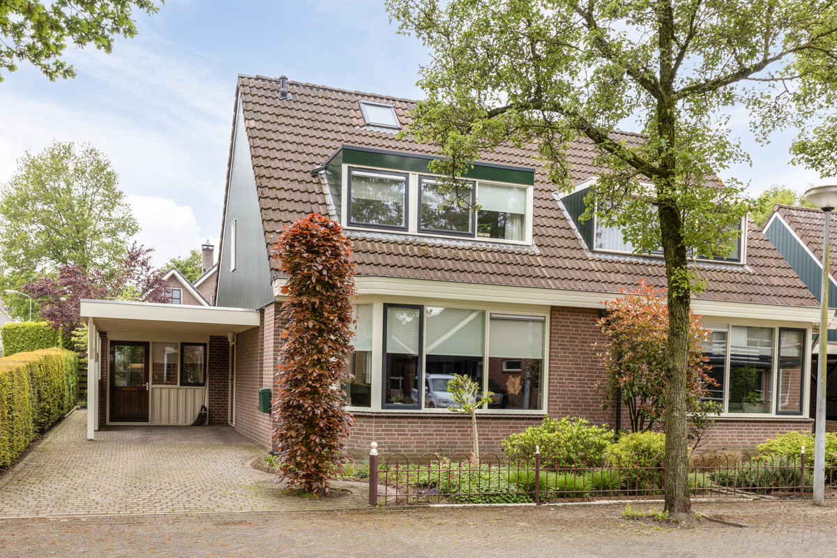 Je komt aan op de ruime oprit met plek voor twee auto’s en bereikt vervolgens de carport. Hier stap je droog en comfortabel de woning binnen via de voordeur onder de carport.