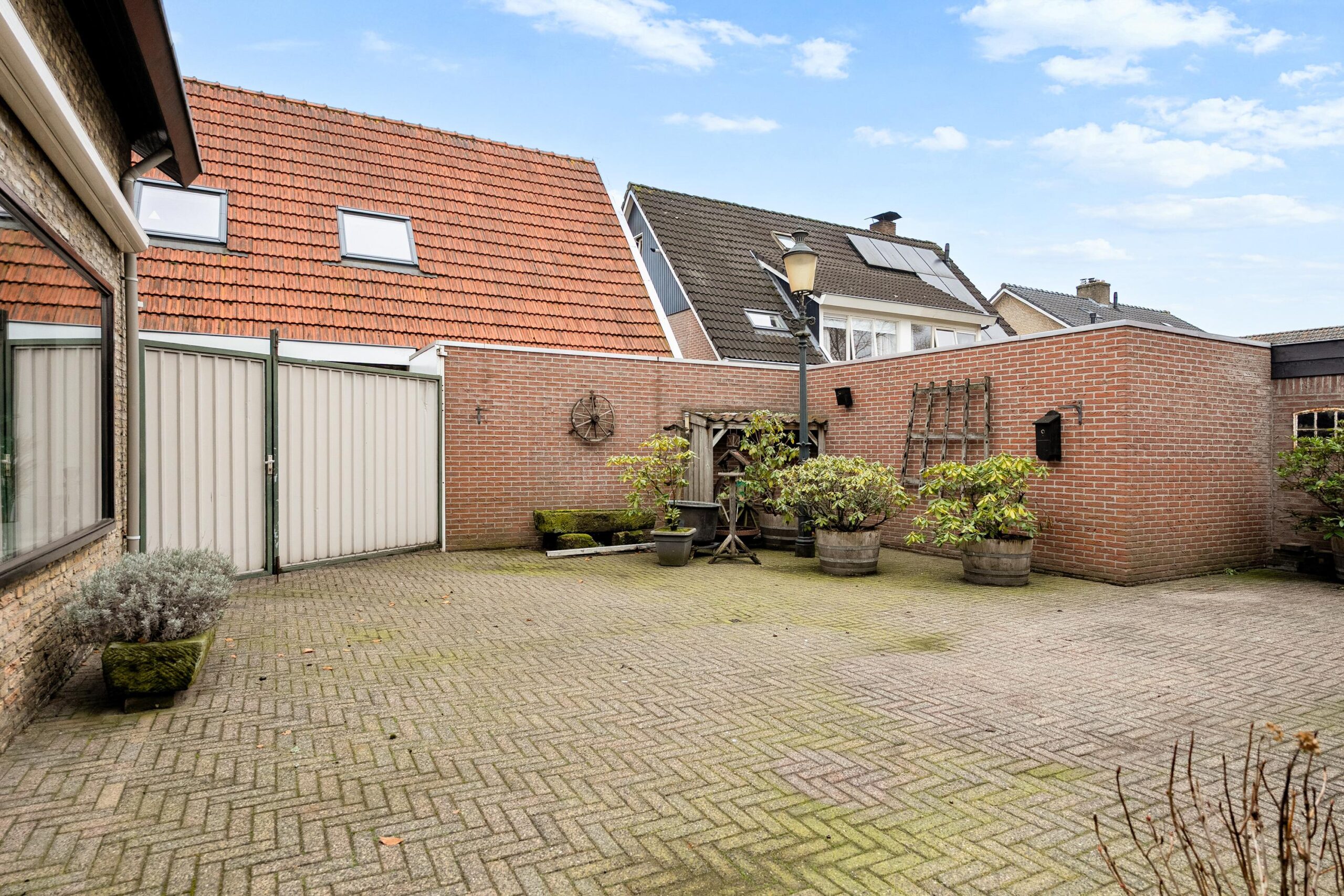 De tuin is volledig betegeld en daarmee onderhoudsvrij. Achter op het perceel staat een in 1990 gebouwde stenen garage van maar liefst circa 50 m², voorzien van een handmatig te openen garagedeur, elektra en water.