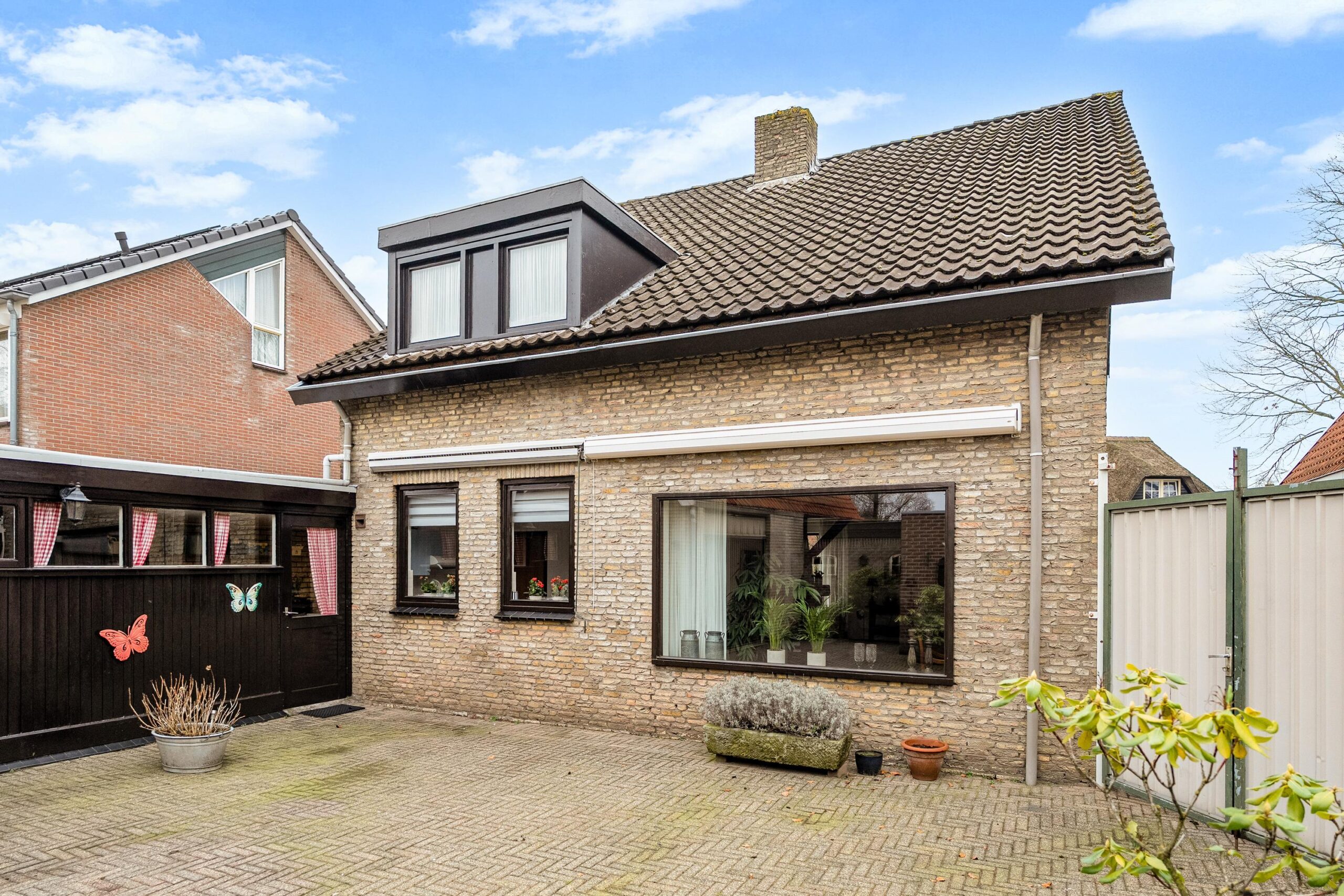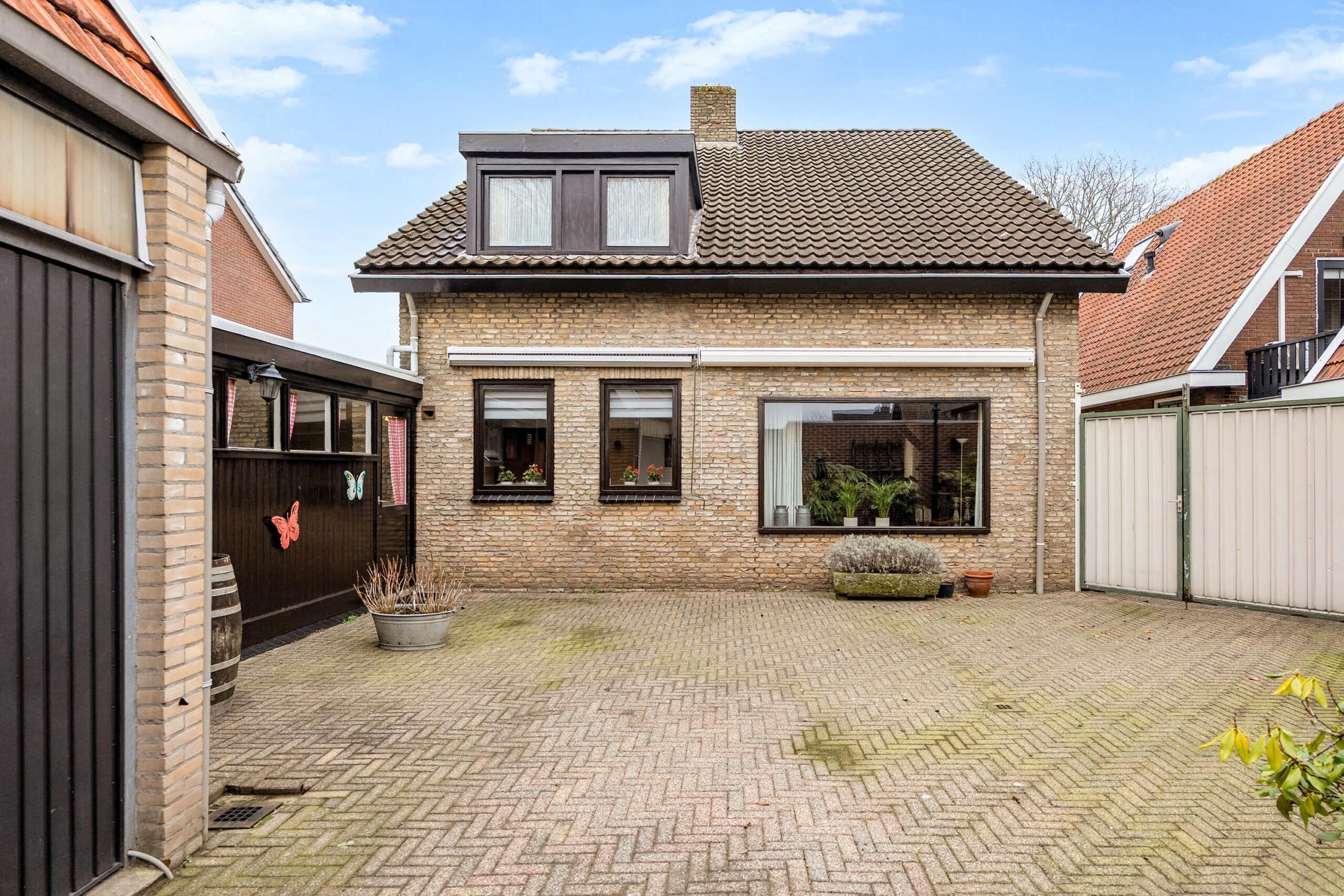 De achtertuin is bereikbaar via de garage én via de linkerzijde van het perceel, waar je met voertuigen de achterzijde kunt bereiken dankzij een groot hekwerk.