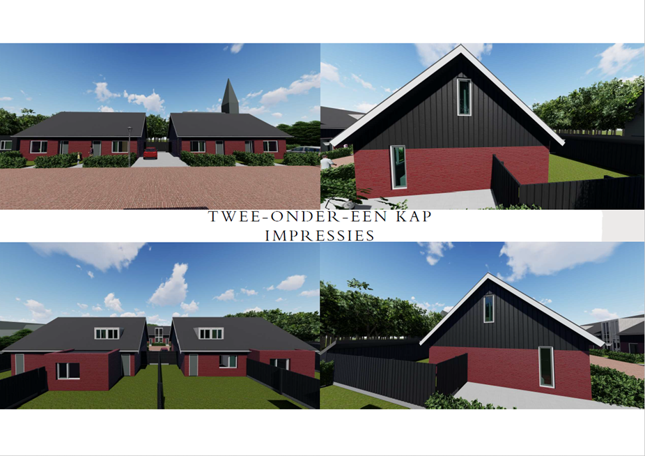 Kavel 1 t/m 4: Twee-onder-één kap woningen.