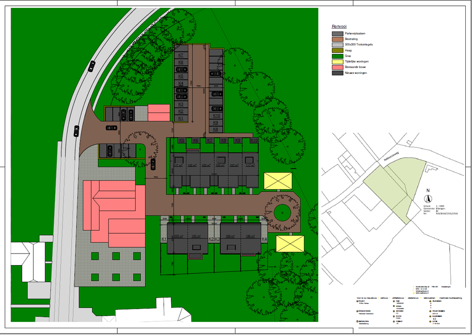 In de achtertuin van de voorgenoemde ontwikkelingen gaat Vastgoed Rekken B.V. tien nieuwbouwwoningen realiseren. De tien nieuwbouwwoningen zullen opgedeeld worden in vier twee-onder-één kap woningen en zes starterswoningen. Daarnaast zullen er nog twee modulaire woningen geplaats worden voor een duur van maximaal tien jaren. De twee-onder-één kap woningen en starterswoningen zullen worden opgeleverd conform de meest recente eisen betreffende isolatie. Daarnaast worden er zonnepanelen aangebracht conform de BENG-eisen (Bijna Energie Neutrale Gebouwen). De woningen zullen worden verwarmd door middel van een lucht-warmtepomp. Daarnaast beschikt elke woning tot een eigen toegewezen parkeerplaats op het terrein. De rest van de parkeerplaatsen dient voor openbaar gebruik.