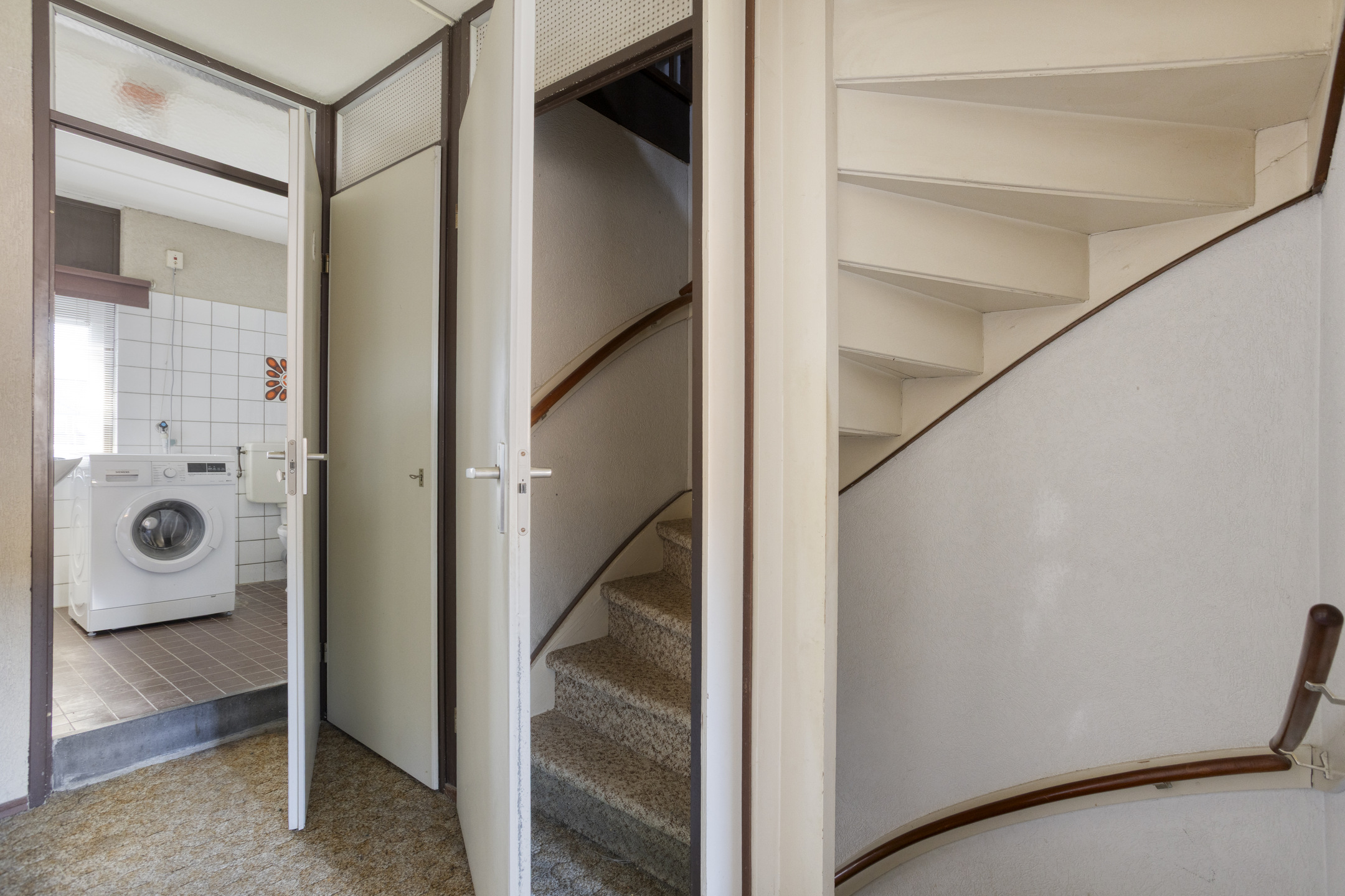 Via de entree kom je binnen in de hal, waar zich de toiletruimte met fonteintje, de meterkast en de trapopgang naar de eerste verdieping bevinden. Vanuit de hal heb je toegang tot de woonkamer.