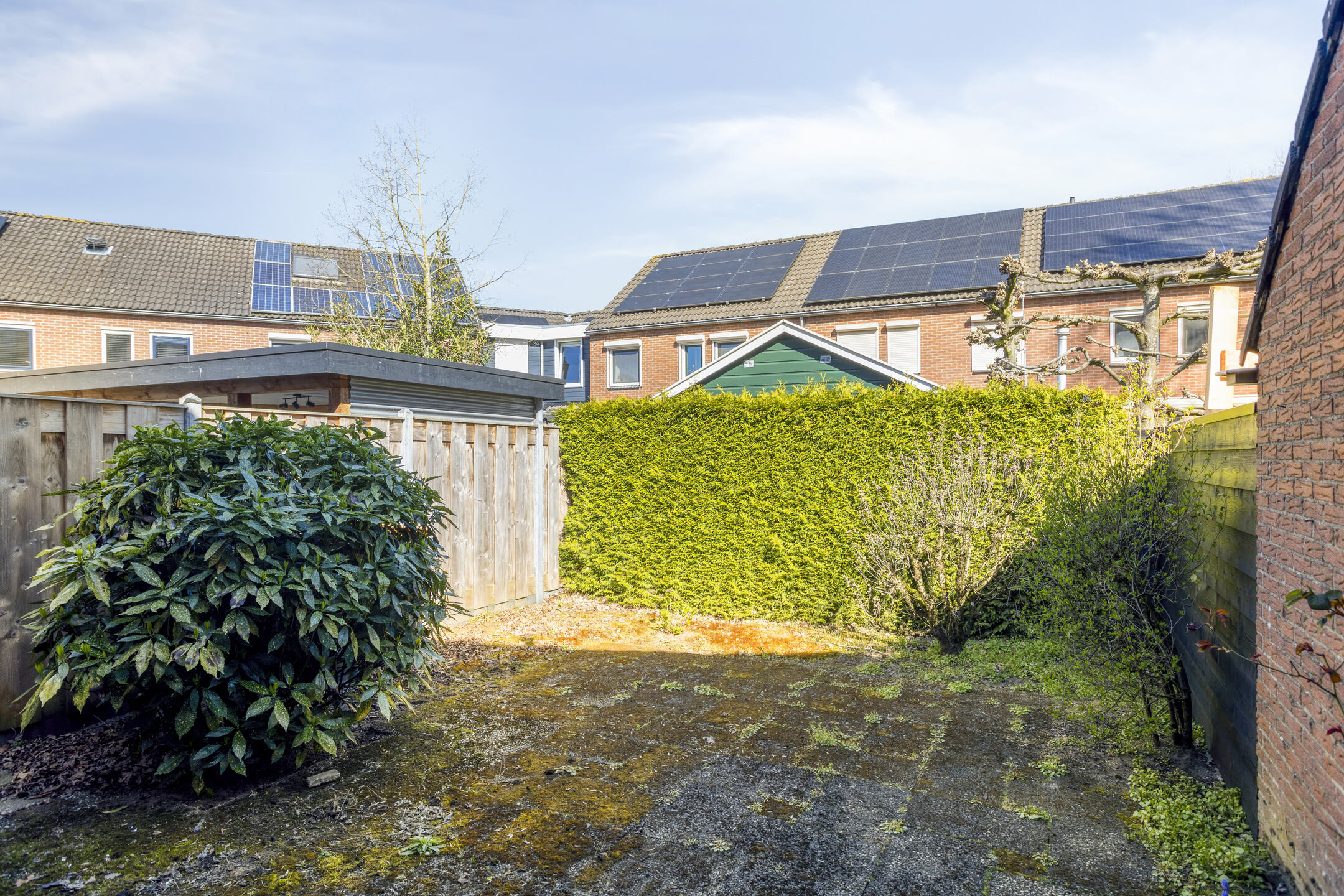 De achtertuin is bereikbaar via de woonkamer en is gelegen op het noorden. De tuin is grotendeels onderhoudsvrij aangelegd, wat zorgt voor praktisch gebruiksgemak.