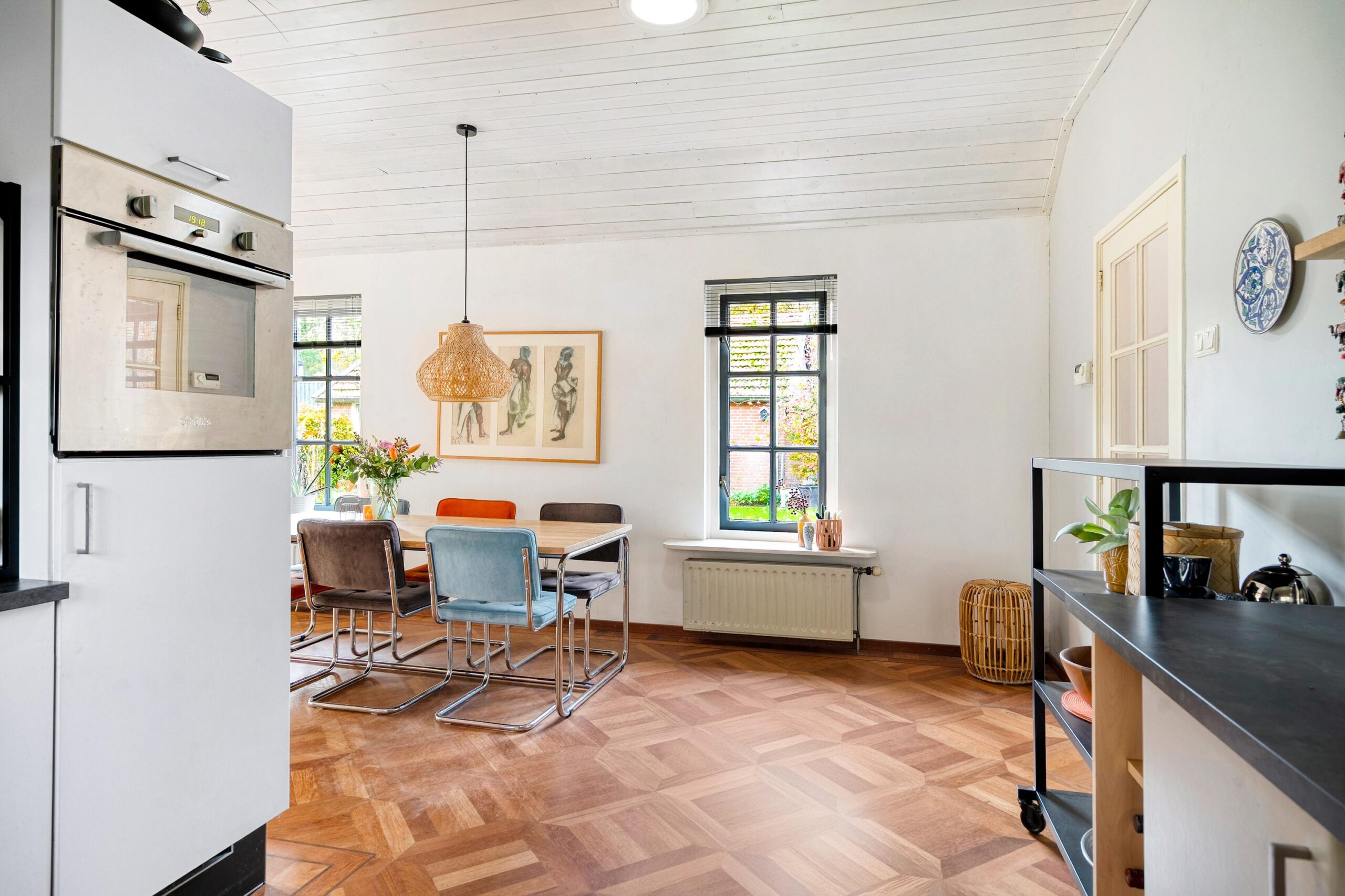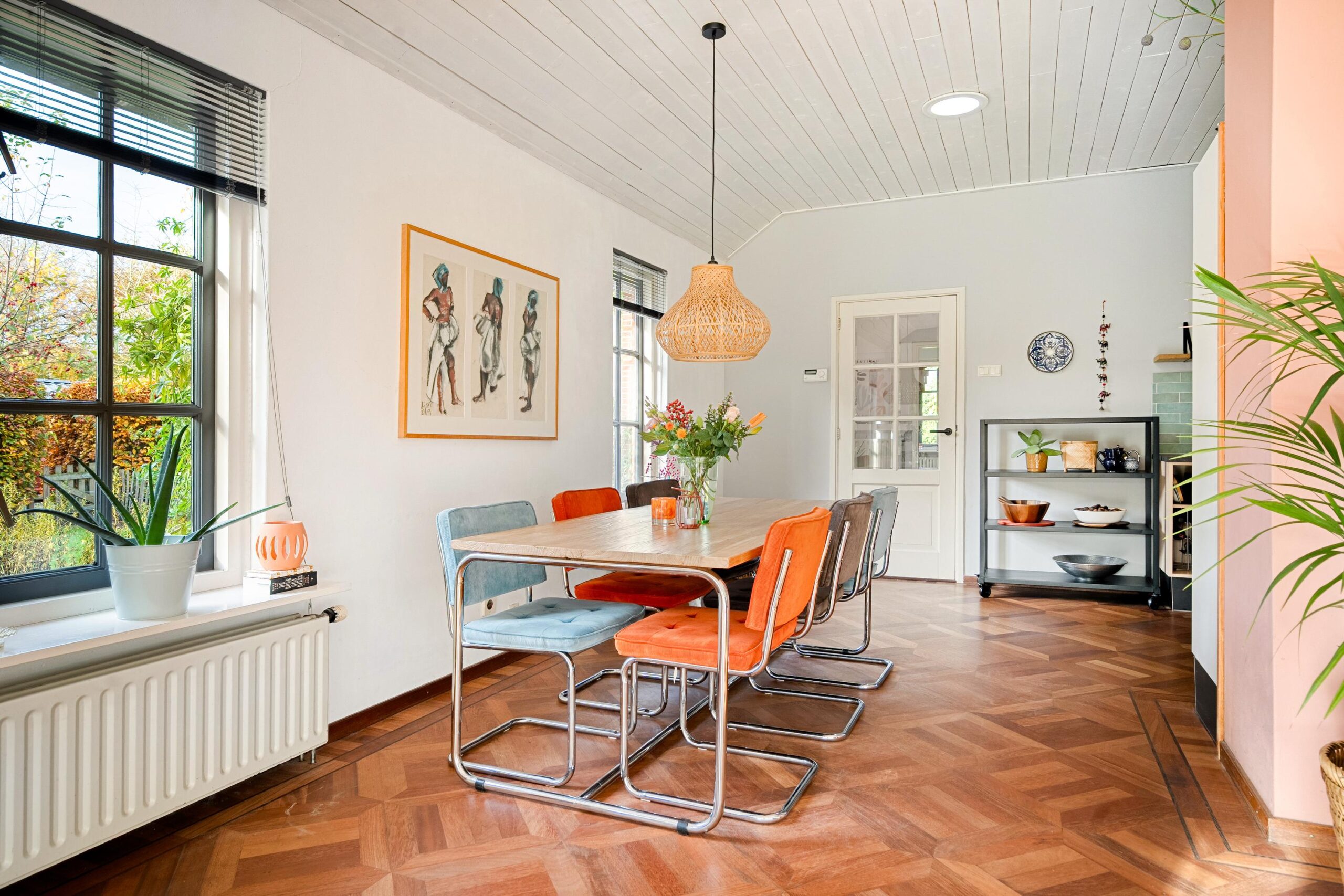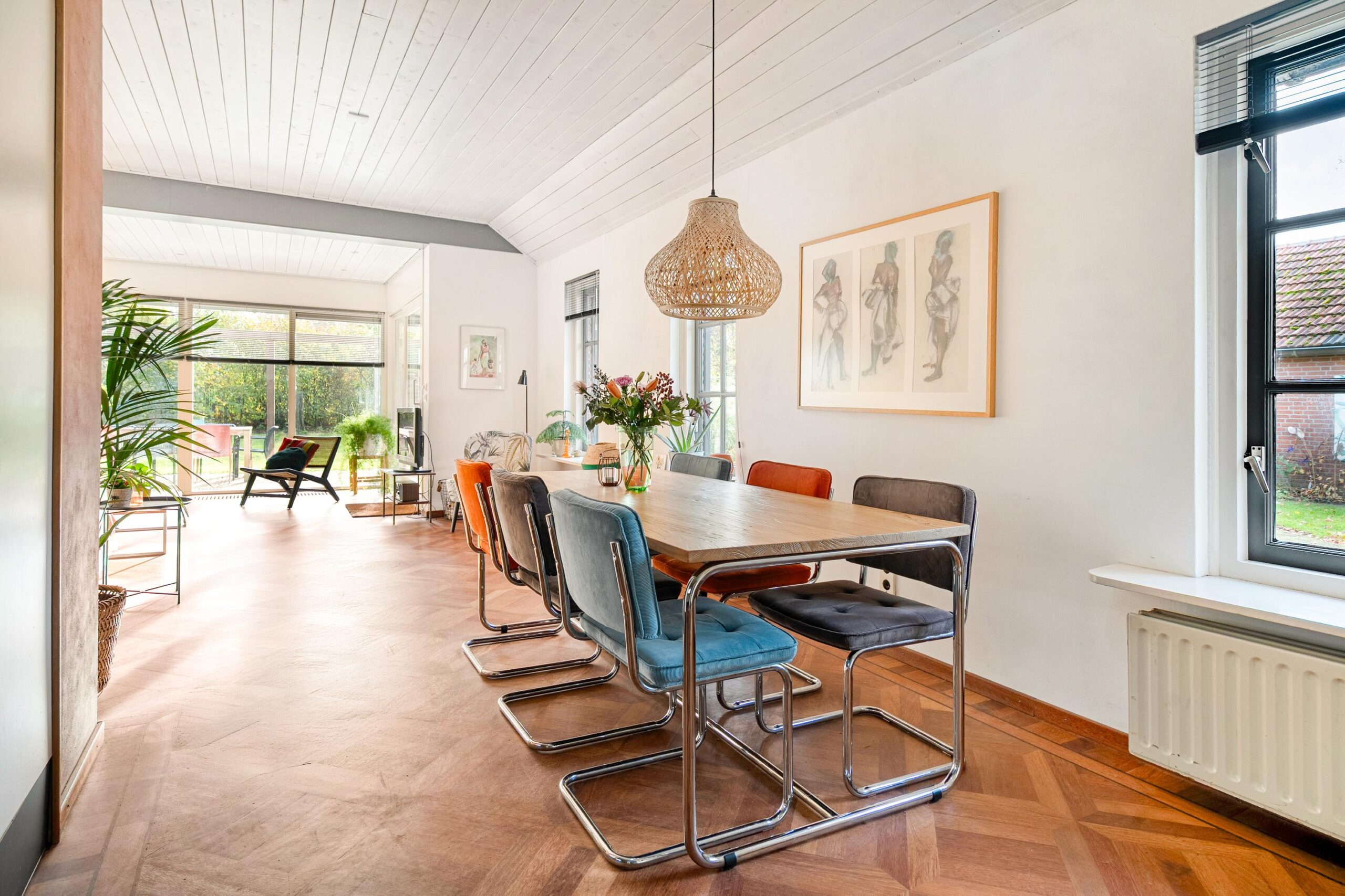 • Licht en ruim interieur – grote ramen, uitbouw en parketvloer zorgen voor een warme, uitnodigende sfeer.