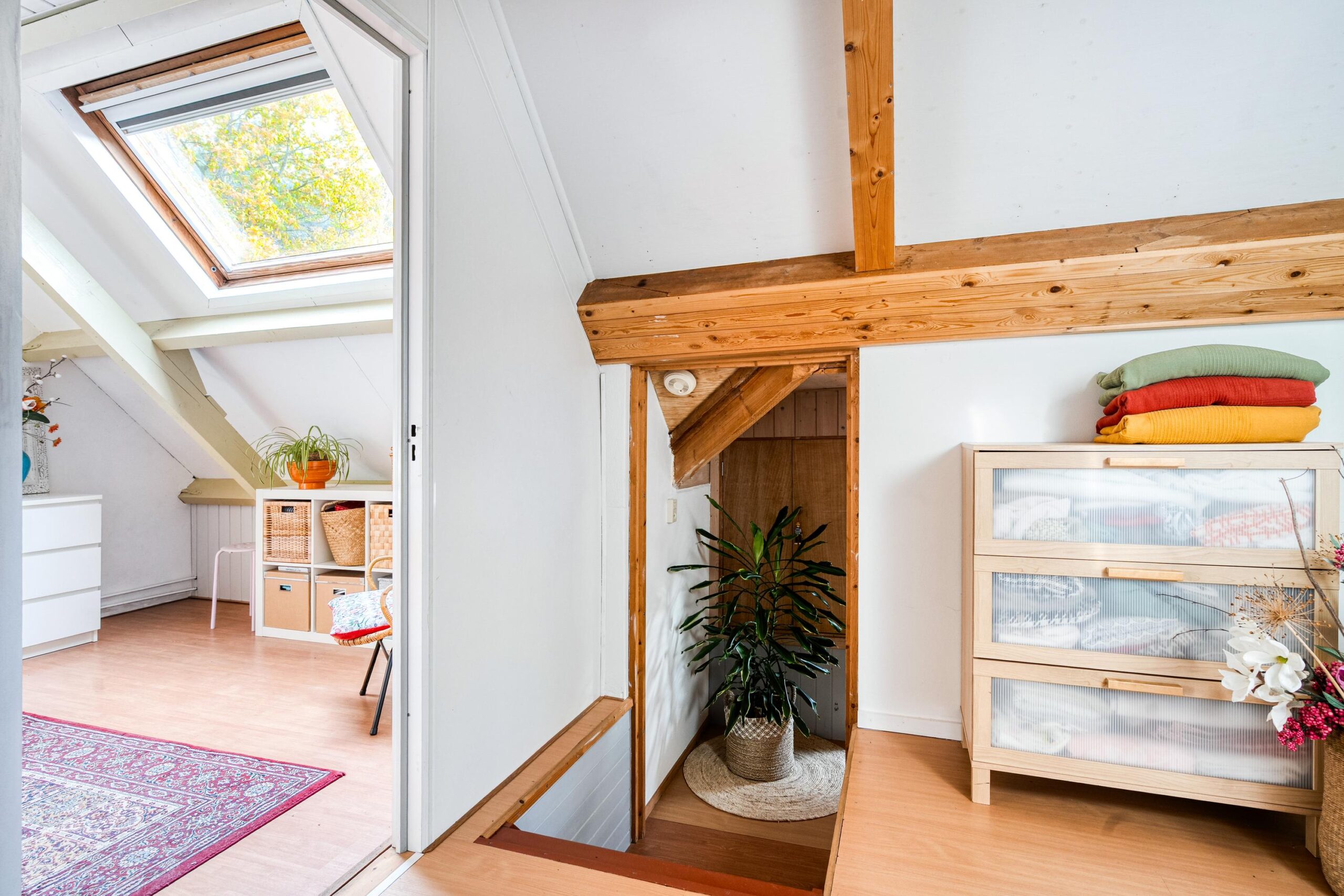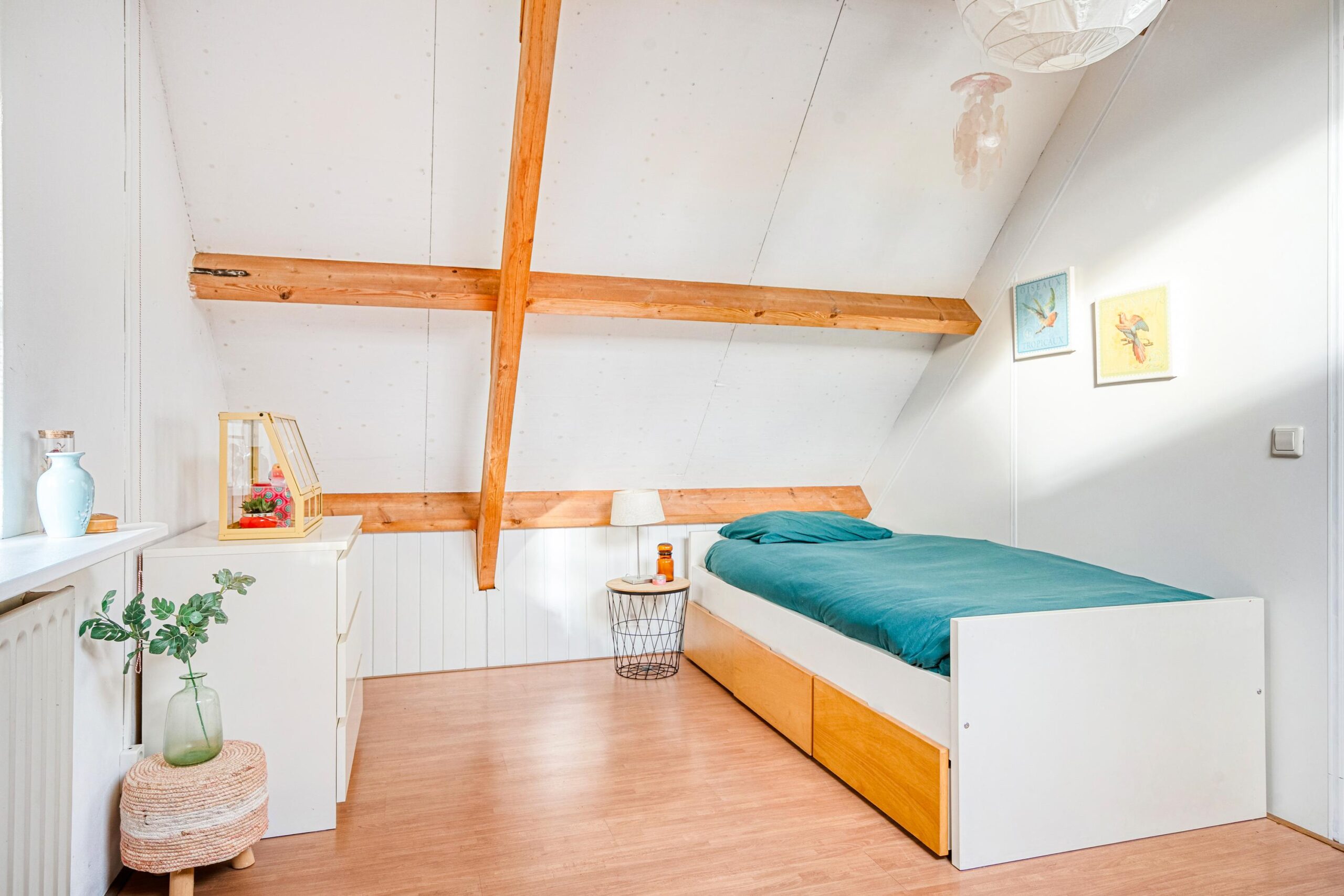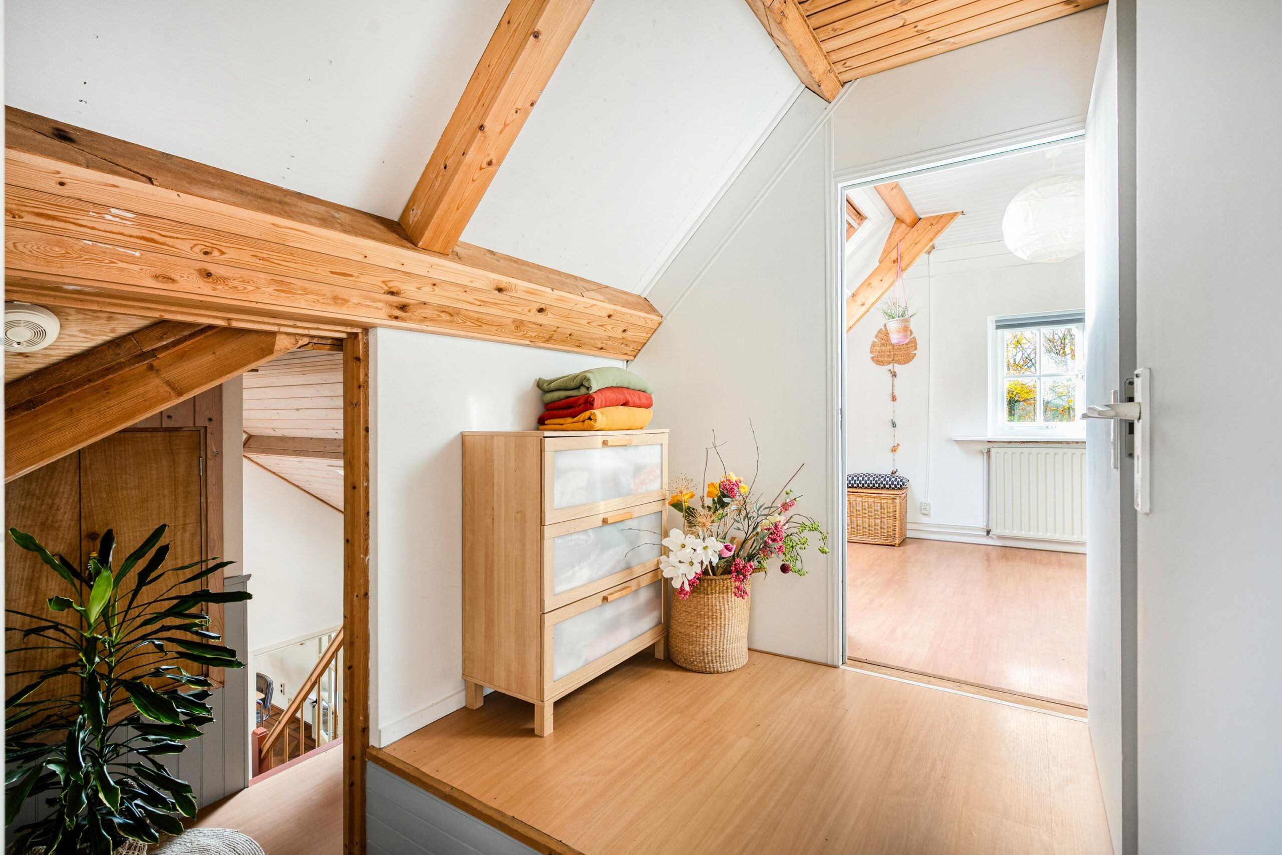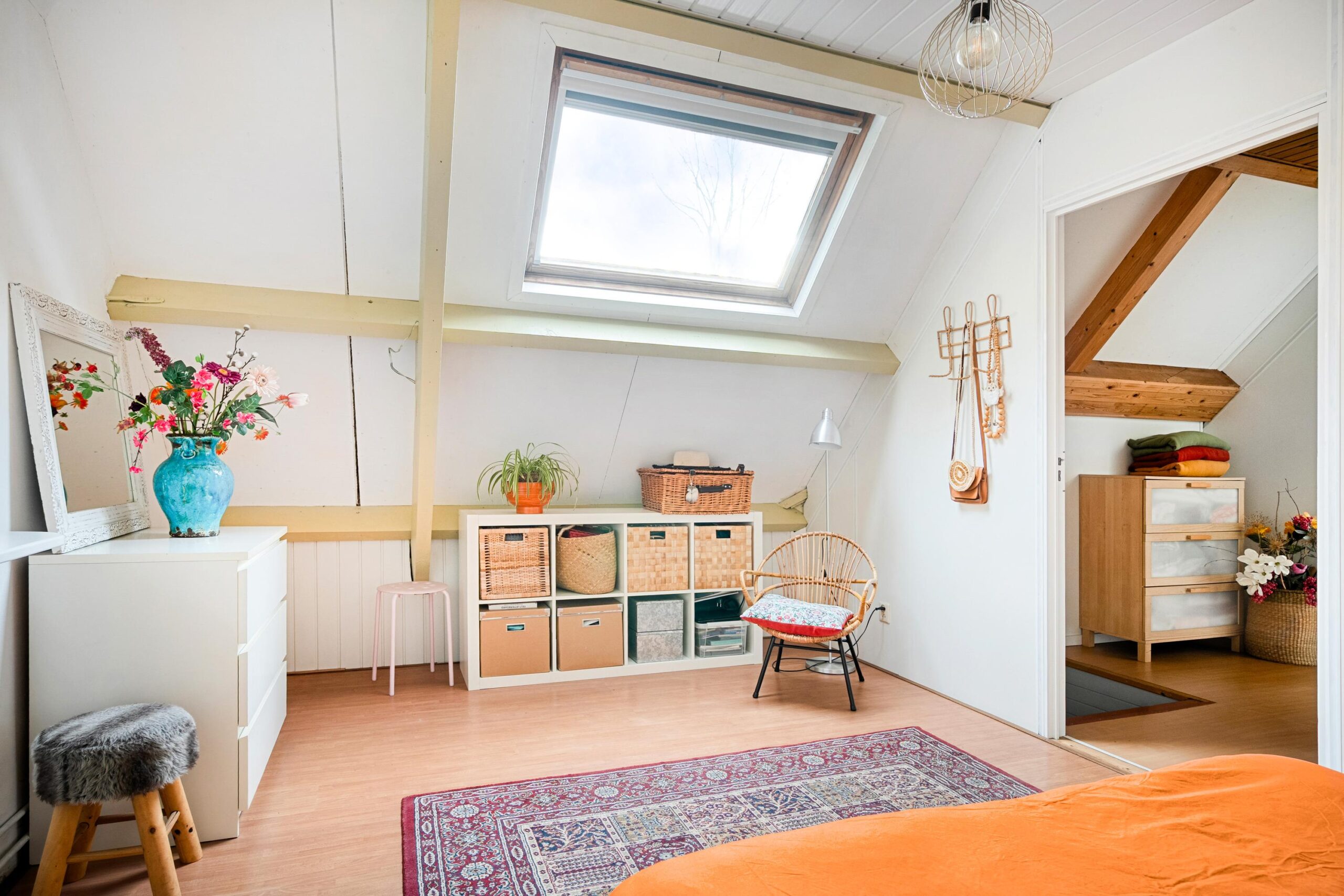 Via een vaste trap bereik je de eerste verdieping met twee royale slaapkamers. Beide slaapkamers hebben dezelfde sfeervolle afwerking zoals het beeld is van de gehele woning. De slaapkamers zijn afgewerkt met laminaatvloeren en worden verwarmd middels radiatoren. Boven de achterbouw is nog extra bergruimte gerealiseerd ten behoeve van het opbergen van spullen.