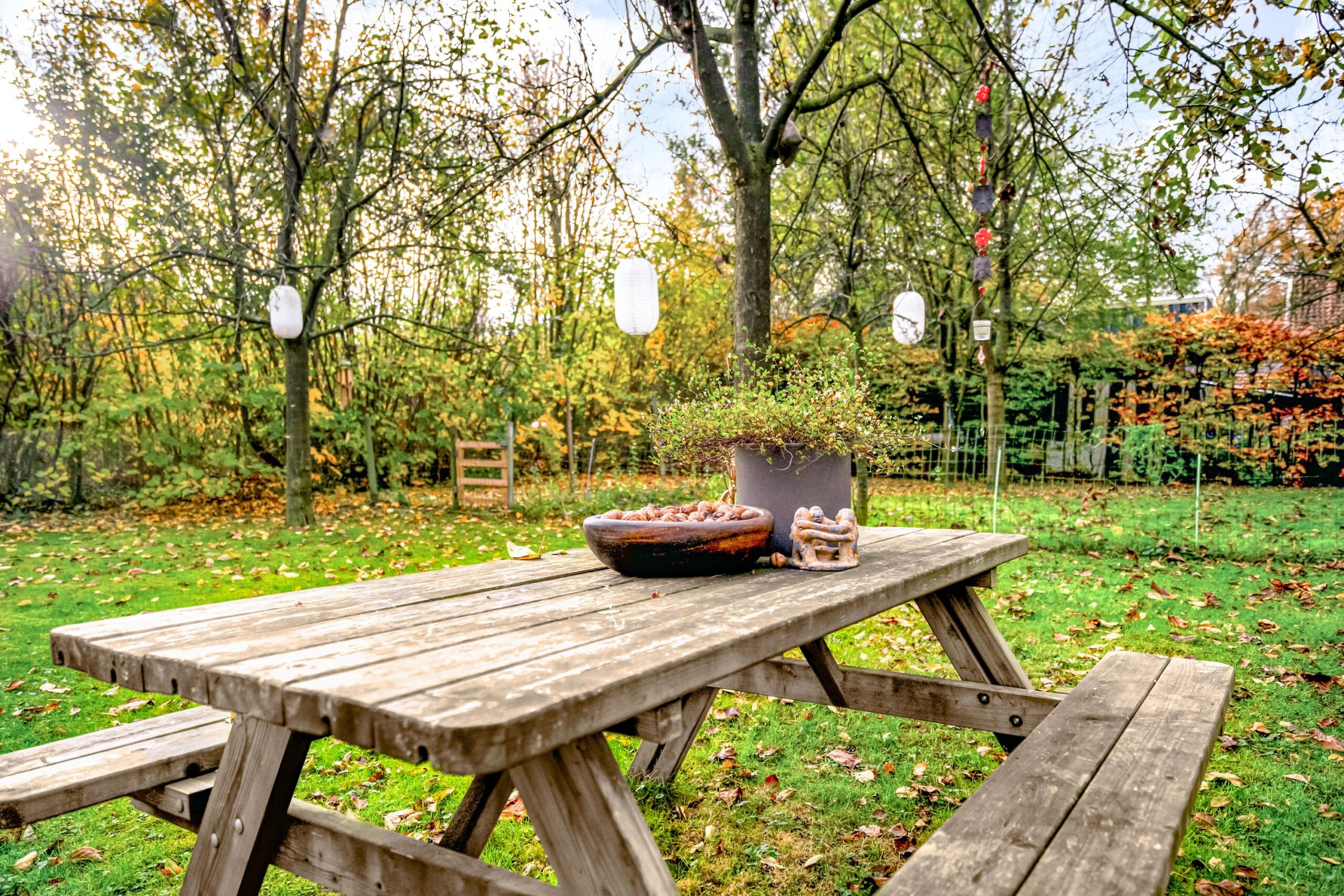 • Sfeervolle tuin met diverse fruitbomen – walnoten-, pruimen-, appel- en perenbomen én een statige lindeboom, perfect voor buitenleven en ontspanning.